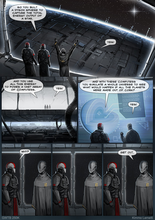 >>97861648All of the weird shit that's out there in space is officially logged and graded by the Universal Centre for Irrationality on the Universal Irrationality Ladder, which goes from the square root of 2 to square root of 113. The centre employs an army of unpaid grad students that travel around and calculate the irrationality factor of various phenomena. The centre does not particularly care to decipher or understand what's going on, but strives to provide an accurate assessment of irrationality for each encountered case, which can then be used by various decisionmakers.Amongst the latest cases studied by the centre has been a giant obsidian pyramid that's appeared out of nowhere and is rapidly approaching the solar system.