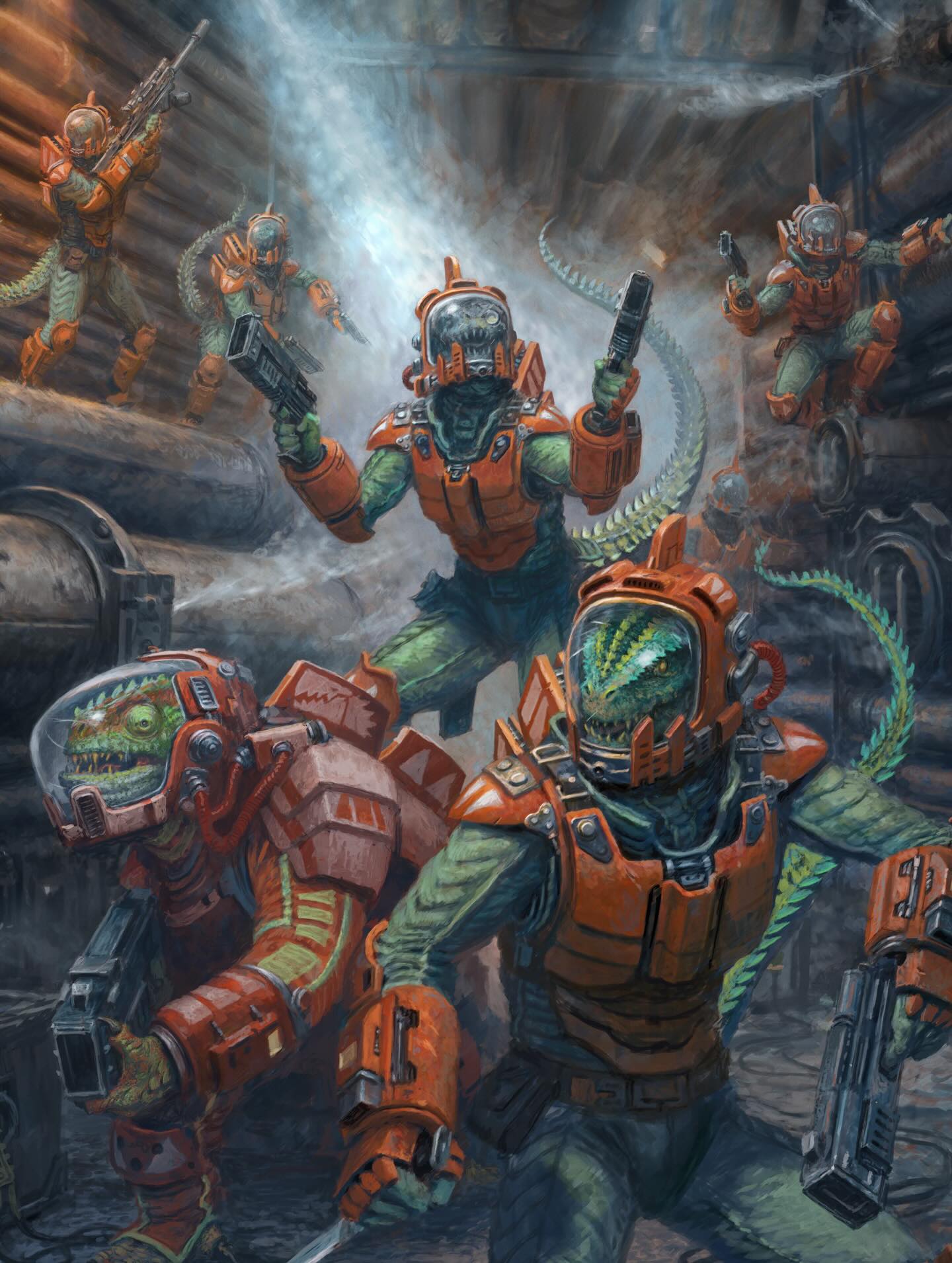 >>97863496what would actually be super sick. Im imagining him like riding on a wave of them. He is even posed for it already, just swapping out that tactical steppy. Im picturing something built up like these forgeworld ripper swarms.