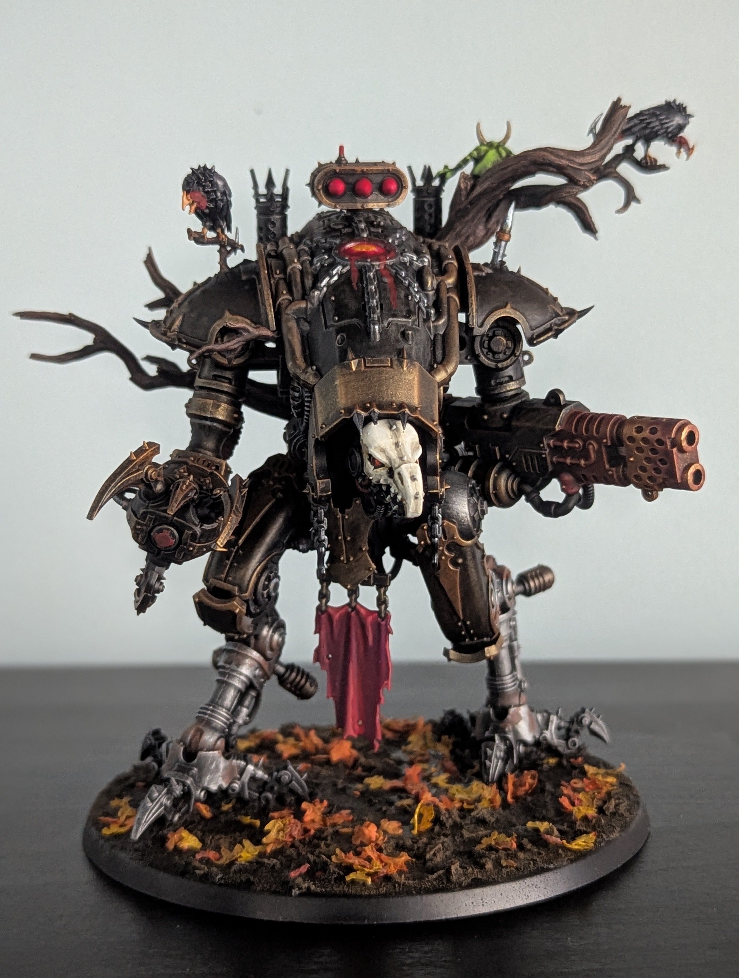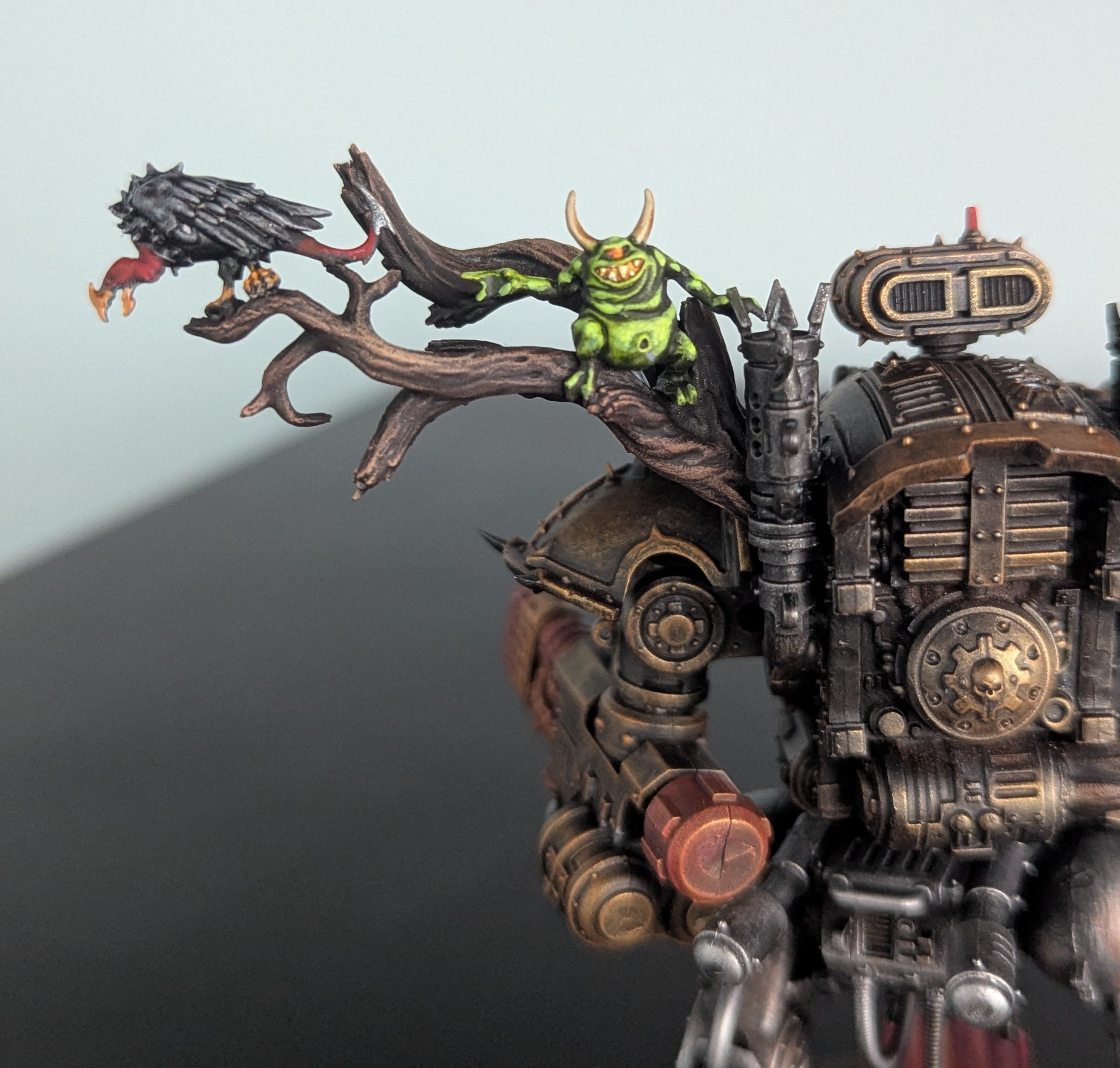 Ok, so I'm planning on going crazy style with greenstuff/bashing and making chaos Votann (undivided but probably with Tzeentch/Slannesh skew)So far, my main ideas to make them look chaos-ey are>spikes/teeth/horns>eyeballs surrounded by flesh where they have no right being>extra limbs from my store's junk bitz exchange>skulls/helmets impaled on spikes (I'm getting the big ass skull pack)>crystal growths on the Tzeentch ones (probably hard to do)>generally fucked up armor I can just do with my knifeAny other ideas? I'm probably not patient enough to do full on CSM style armor trim.
