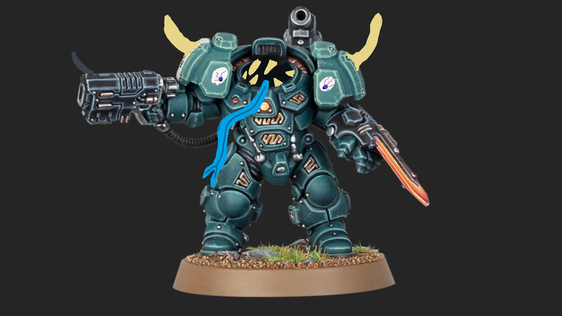 >>97864958The Leviathan dread looks naked without trim.Good shit though. I'm just starting a Legionary squad and I'm still at a crossroads of painting them as classic NL or a warband.