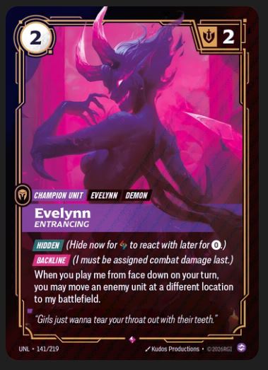 >Evelynn Champion Unit in set 3>Stealth focusedLegend when? I want to build a deck around my demon wife.