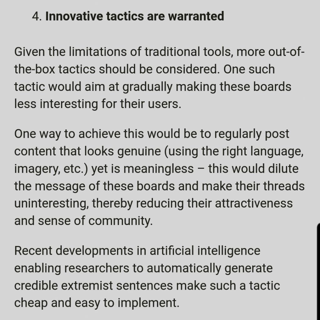 >>97875693>>97877676Its British glowies btw.https://crestresearch.ac.uk/resources/mining-the-chans/They have numerous groups that go online to "combat the far right" like GCHQ, jtrig, 77th brigade, the nudge unit, and more. Jtrig have been derailing youtube comments section since at least 2011 for example. The brit glowies have went hard over the past 2 years to destroy brit/pol/ and have succeeded at it.The uk establishment are fucking mental and target anything remotely right wing. Yes that includes here with your nazi tanks.