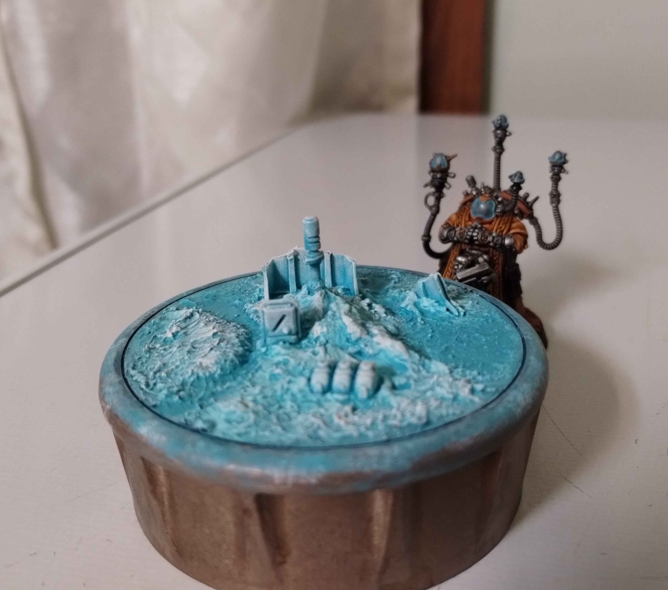 >basecoat almost done on collage entry>already losing interest>think of challenging myself on a technique to keep interest>remember i'm covering it in grime and blood lateridk, space wolf colors are boring. do i drybrush as a joke then?
