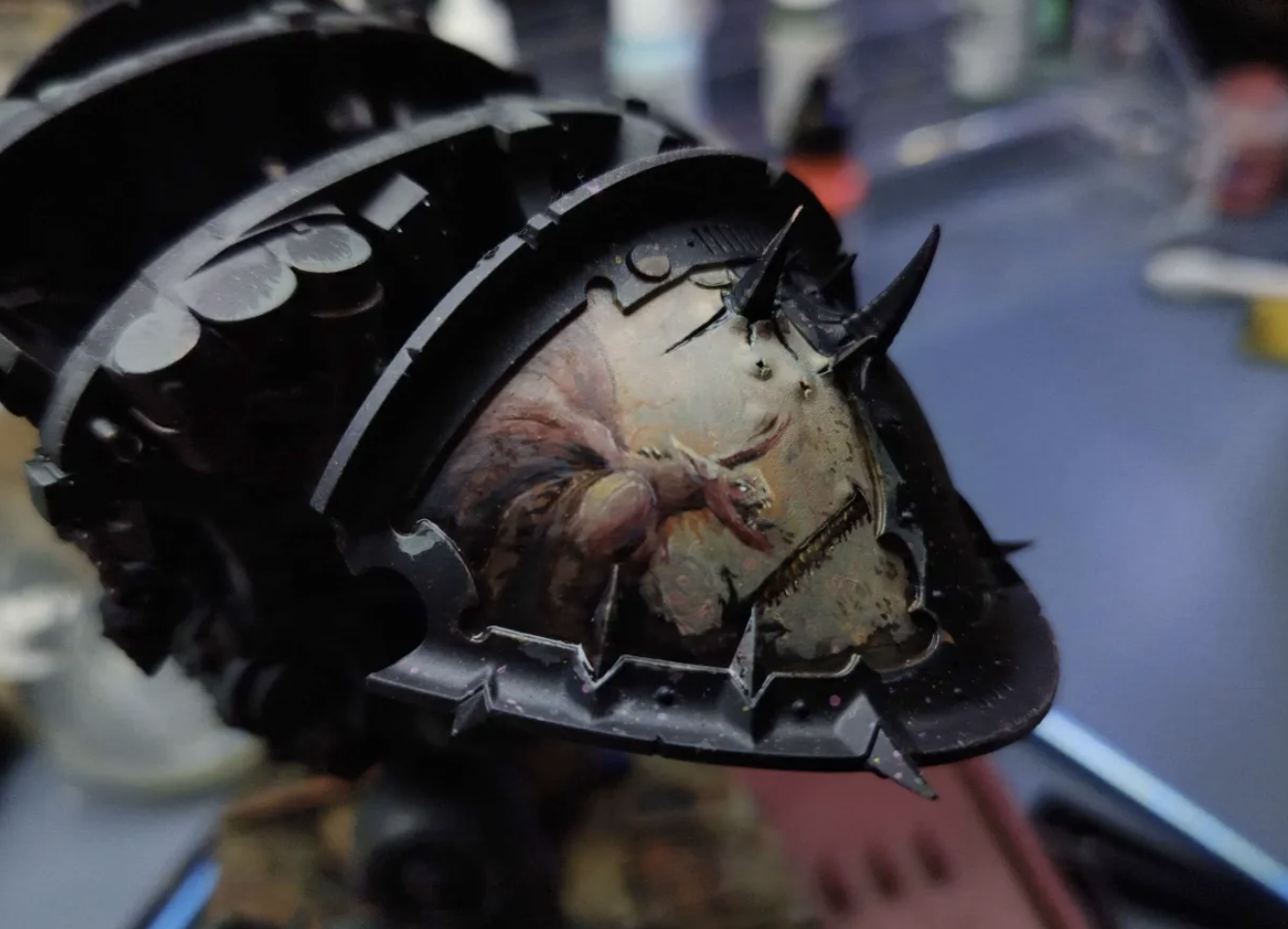 >>97883462>TQ: How’s your WIP? unfortunately, as soon as I got home I spent the next 6 hours in bed doing fuck all, but I did get up at some point to paint some of the metals on, and put some more coats on the shoulderpads.