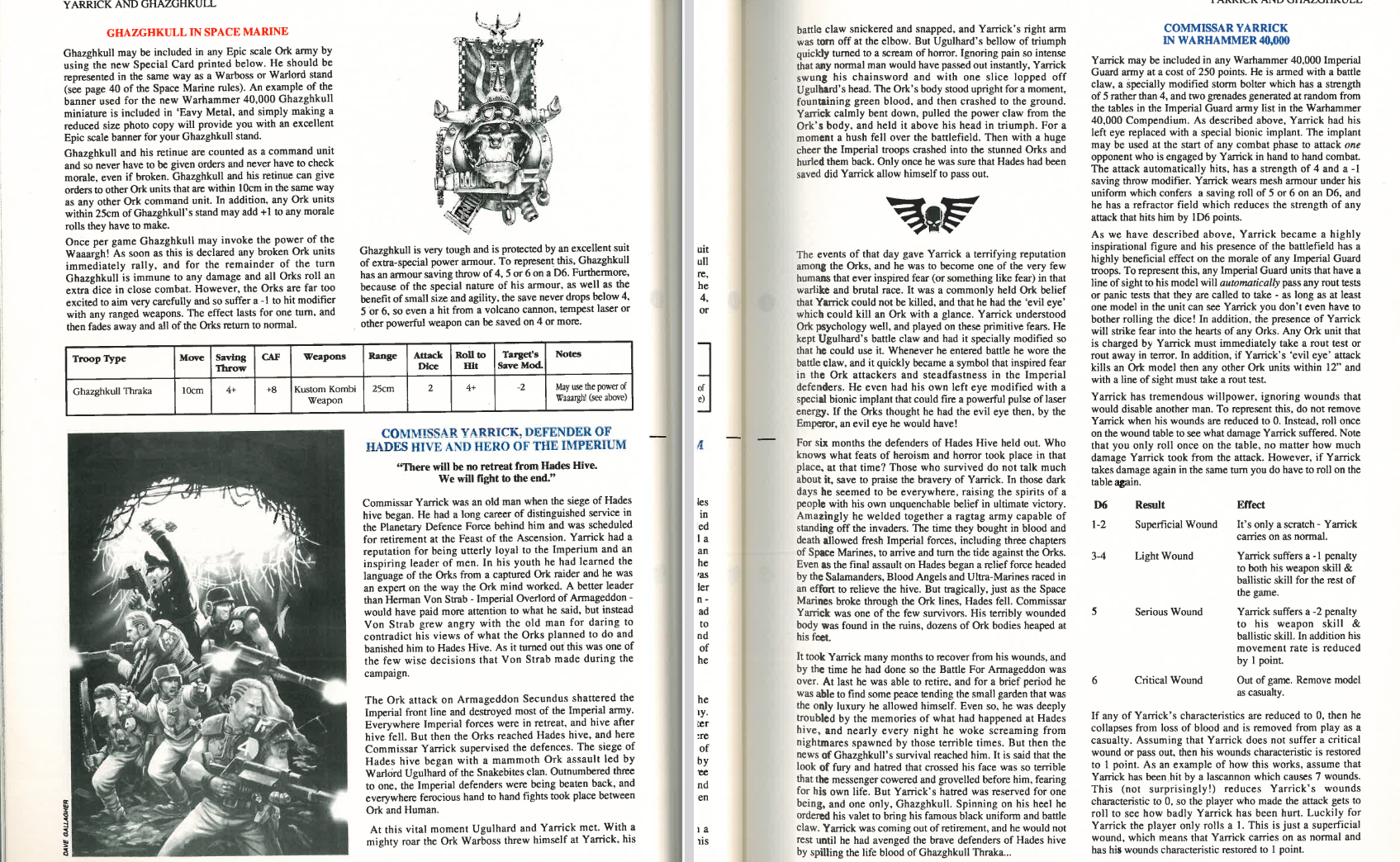 >>97886544>Yarrick being revived by astartes-tier surgery and cybernetics is much more palatableYarrick being on the verge of death but being revived is also one of his Things since the start(White Dwarf 152 pages 16-17), so I wouldn't be surprised if they are trying to repeat that with this recent lore tidbit.