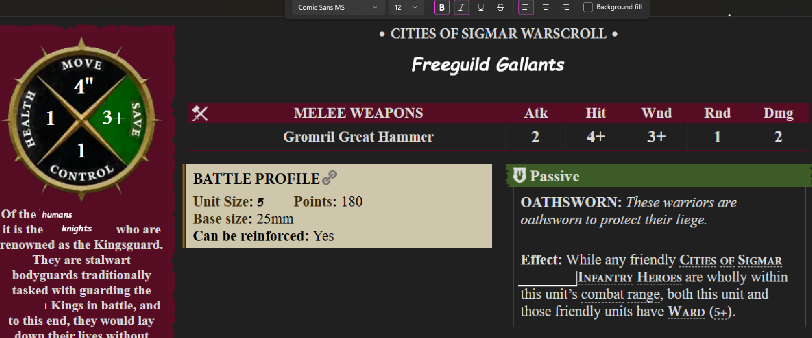 GUYS I found a leaked profile for the Freeguild knights from the new box!