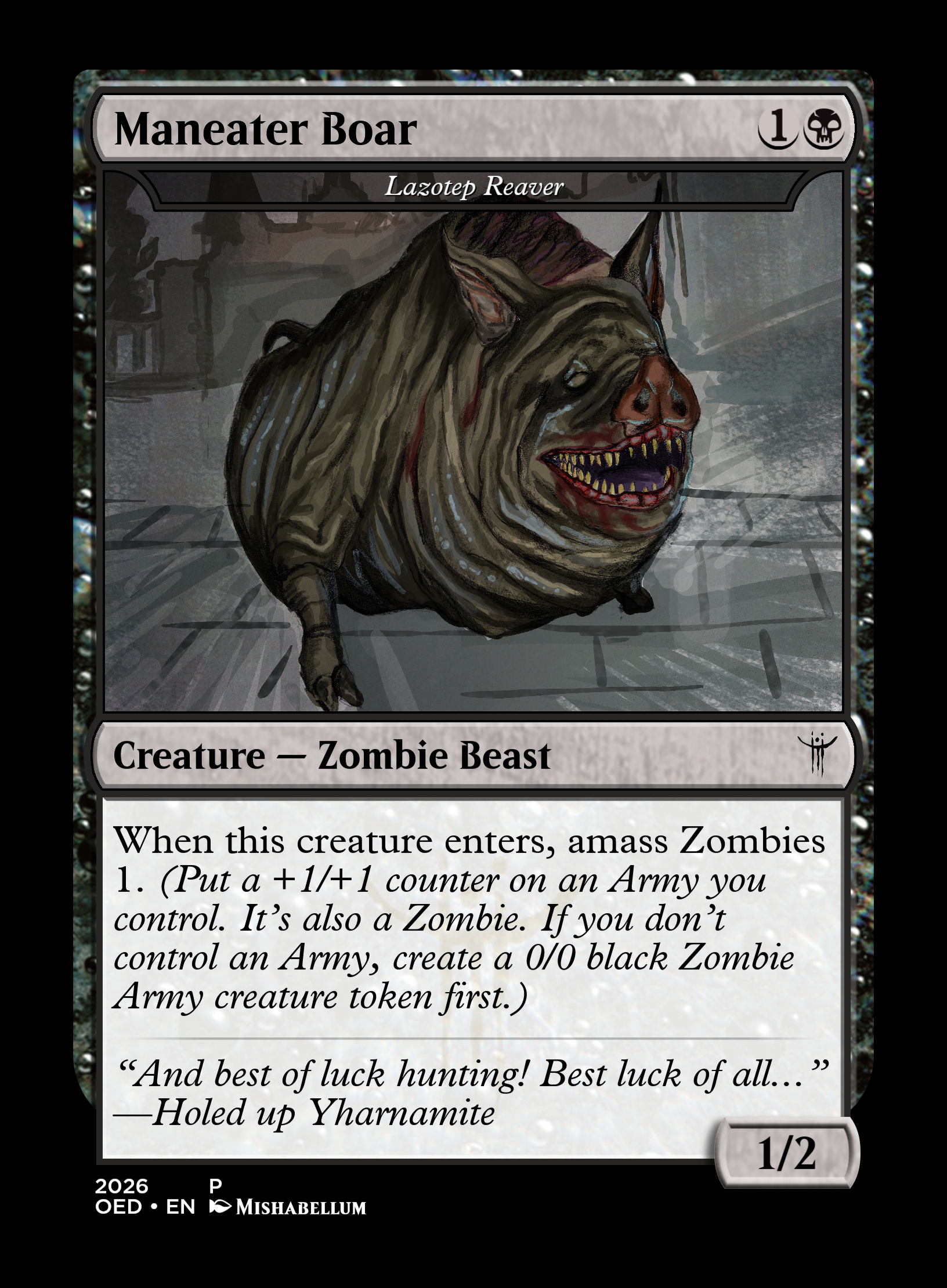 >>97887530What's the lore behind his tusktration? Did Teferi and his people cut them off to sell to the goblins?