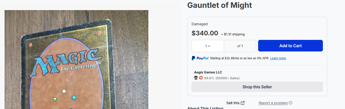 Good lord, even a gauntlet of might that has been chewed on, fully digested and shat out is still expensive as hell. Should have bought it 18 years ago.