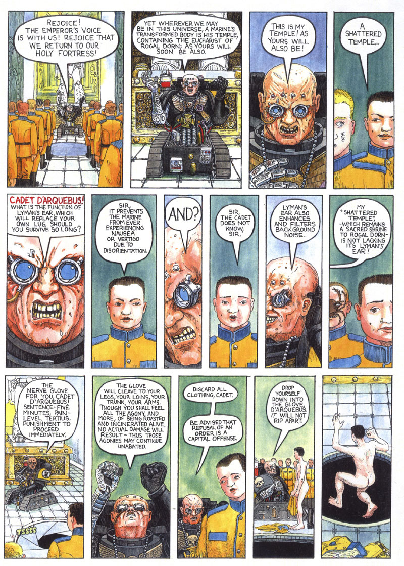 >>97890240>>97890240>Perhaps the strangest talisman – and one (or should one say many…?) which made those initiates feel themselves intimately a part of the Fists – was kept in a long crypt below the Reclusiam, reached by a dropshaft which would incinerate anyone who did not sport a Black Carapace beneath their skin.>The adamantium floor down there was inscribed with a maze of tiny coloured channels that bootsteps would never be able to wear away – in a pattern suggestive of a cosmic map – and along all of those channels were spaced little indentations the depth of a Fist’s thumbprint, each recess named with a rune. At one end of this seemingly arcane map or game-board an enormous plascrystal bowl held thousands of what at first sight appeared to be bloodshot ochreous eyeballs.>Each ball commemorated the initiation of a group of ex-cadets, throughout the aeons, each being a nugget of the liquid amber and blood drunk from Rogal Dorn’s own chalice by the Reclusiarch of whichever epoch, and defecated by him subsequently in this shape.So yeah, maybe.