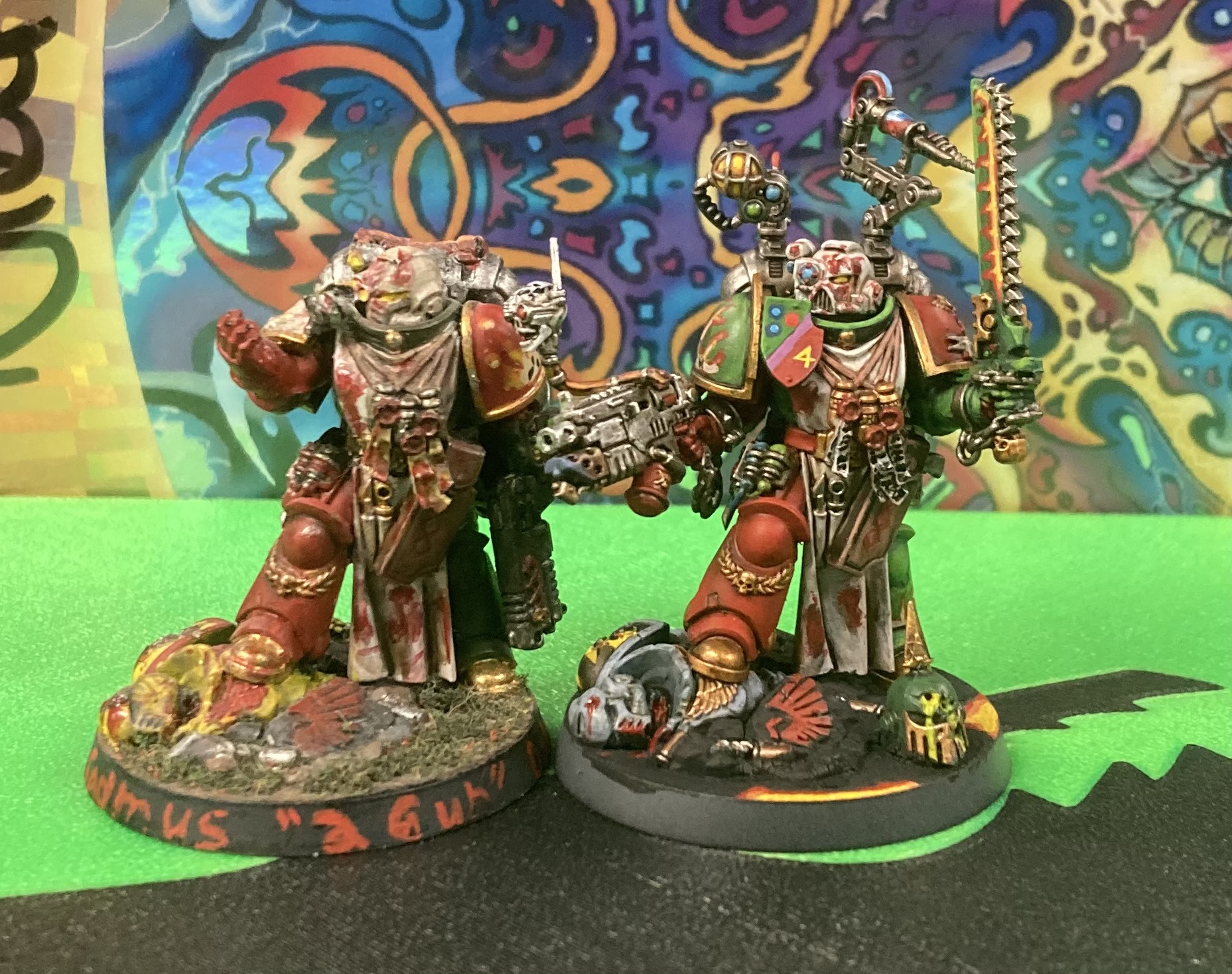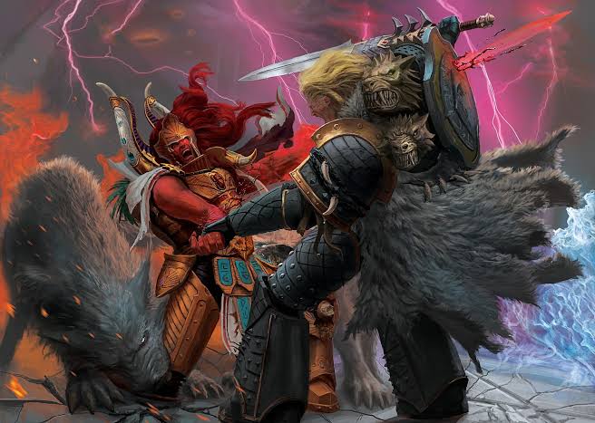 A WIP in the style of the collage, I didn't like all the shitting on the wolves so I made a Dark Wolf chaos lord sacrificing a Space Wolf to an altar of Khorne. Made using jakhals, havocs, intercessor bits, the battlefield trophies box and kill team nemesis. Also though about acquiring a Wolf Priest to get the skull wolf head since it's very kino and space barbarian pilled. I should have bought that 180 dollar space wolf battleforce I saw last year.>>97900494Like that one guy who modeled mechanicus giant mutants that went rogue.