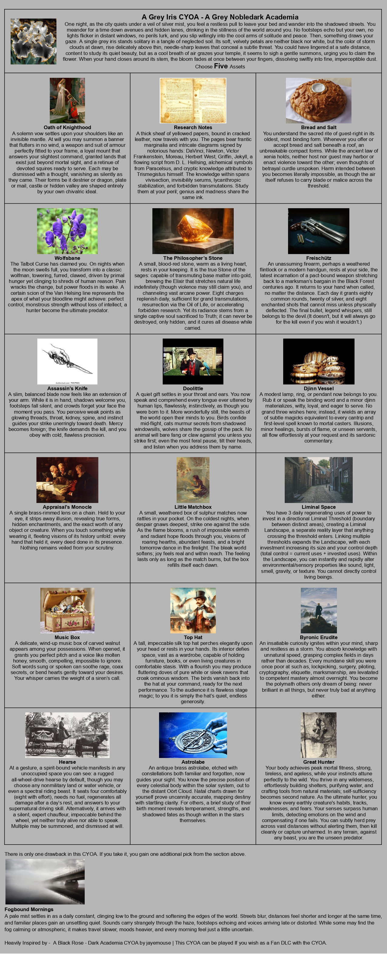 >>97900959I once turned a build into it's own 2 page CYOA.