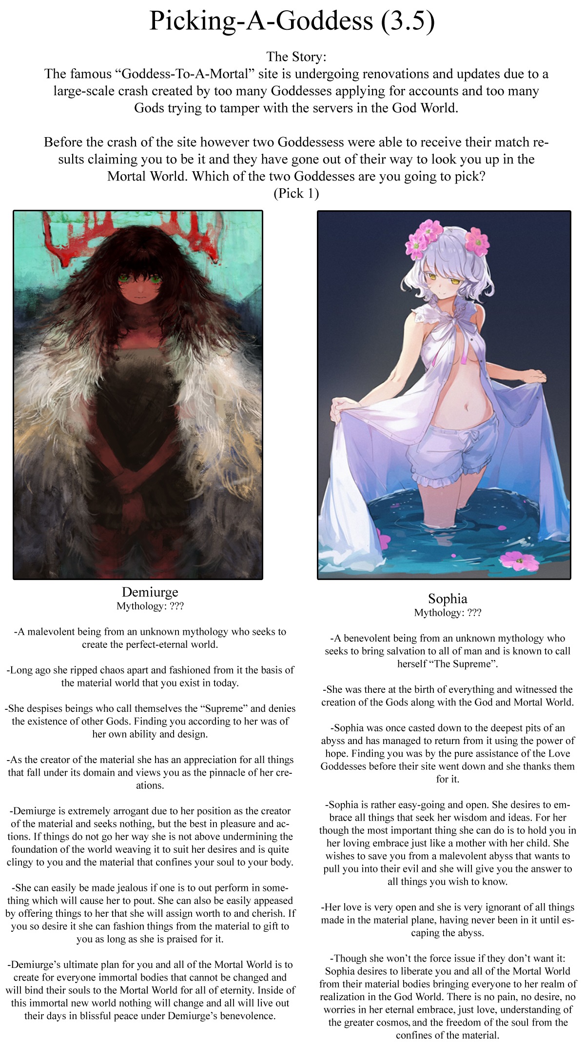 Archives & Other Resources: https://rentry.co/cyoagAllsync: https://cyoa.allsync.com/s/owWor64yLTngDk3Previous thread: >>97891788This is a new one I just finished. (1/7)