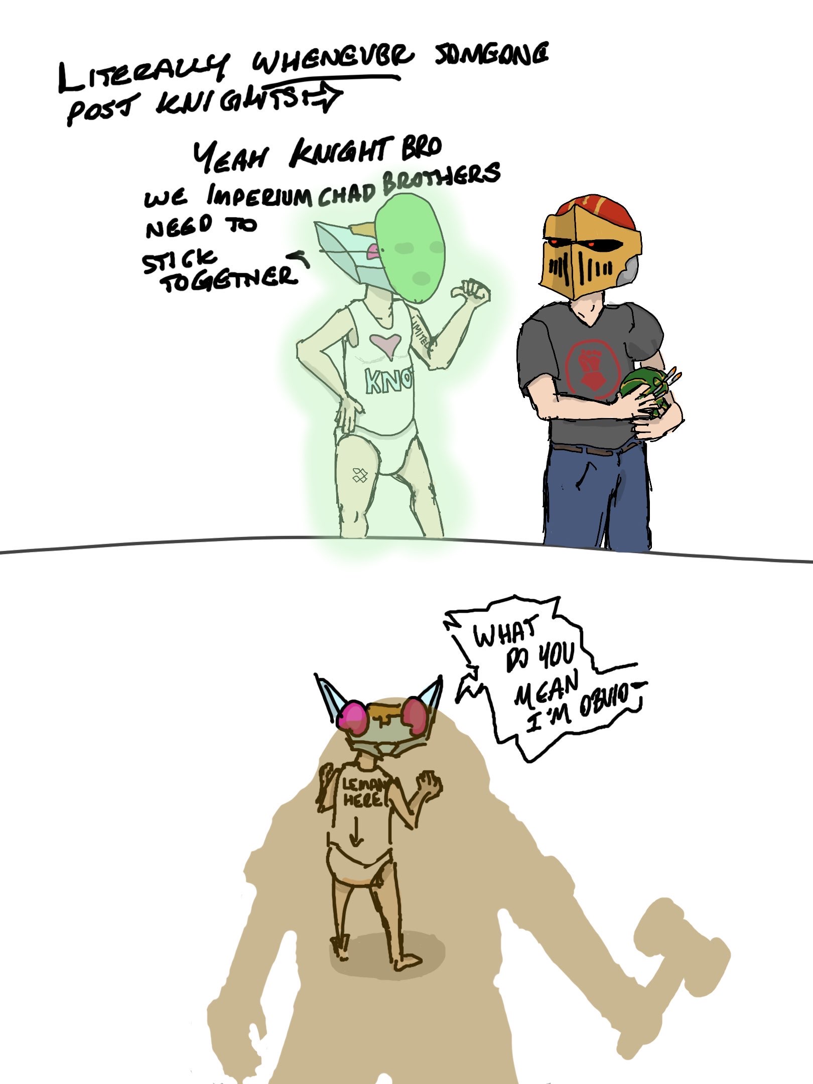 >>97909996>TQThe Imperium are evil and the bad guys, while the Xeno Tau are the good guys.Also nice art; it's been a while since I saw a Lho stick in a 40k piece of art, shit they're completely dissapear from IM's armoury, alongside the drugs and alcohol.