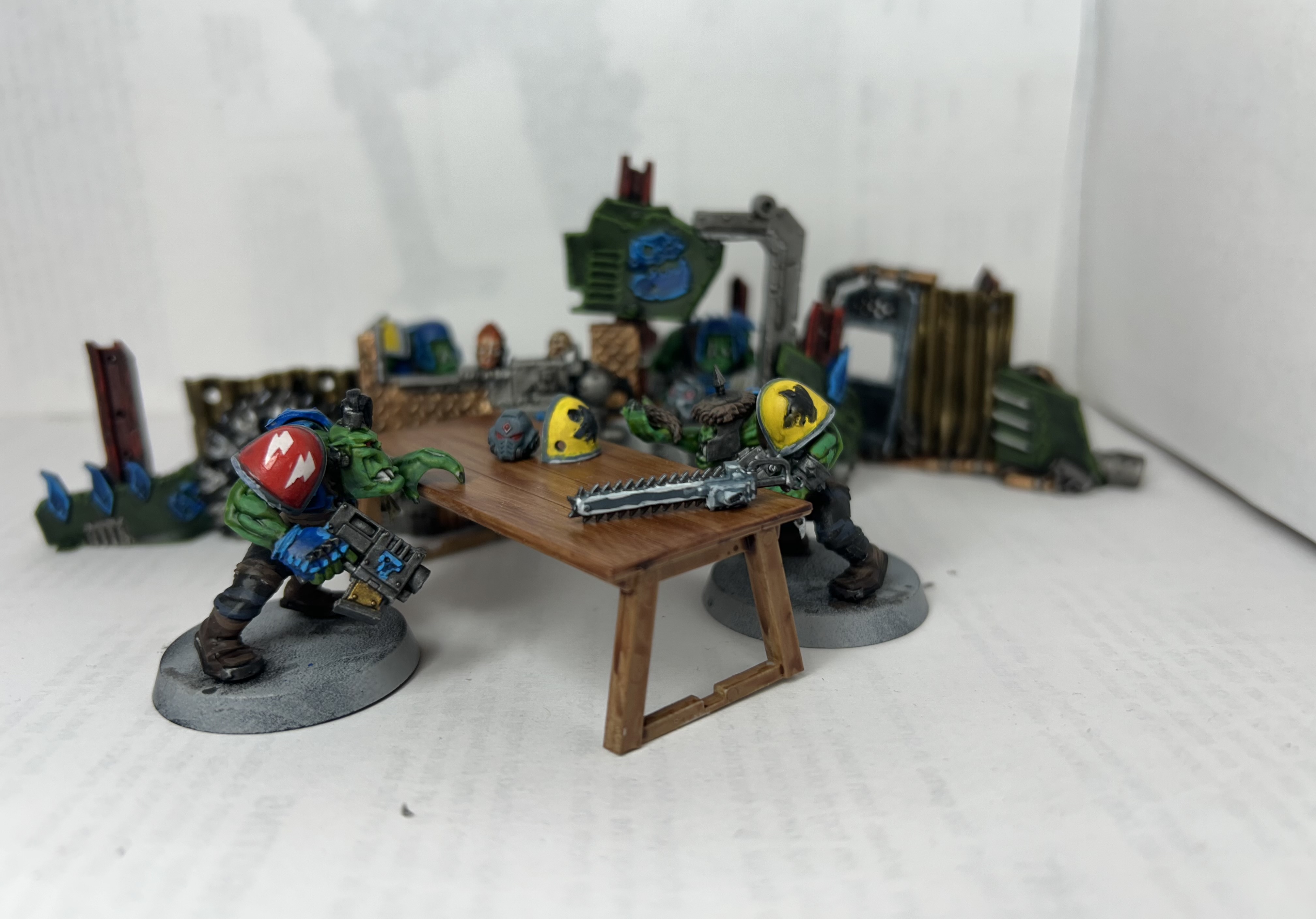 >>97912371Thanks, I love the use of looted weapons and armour on your orks.I just used a brass rod and rolled up some green stuff into thin tubes and wrapped it around the brass rod. After that, I use some liquid green stuff on the guts and torn flesh to give them texture. Painted the guts by layering down from purple to pink before using a liberal amount of blood for the blood god and some dirty down gore.