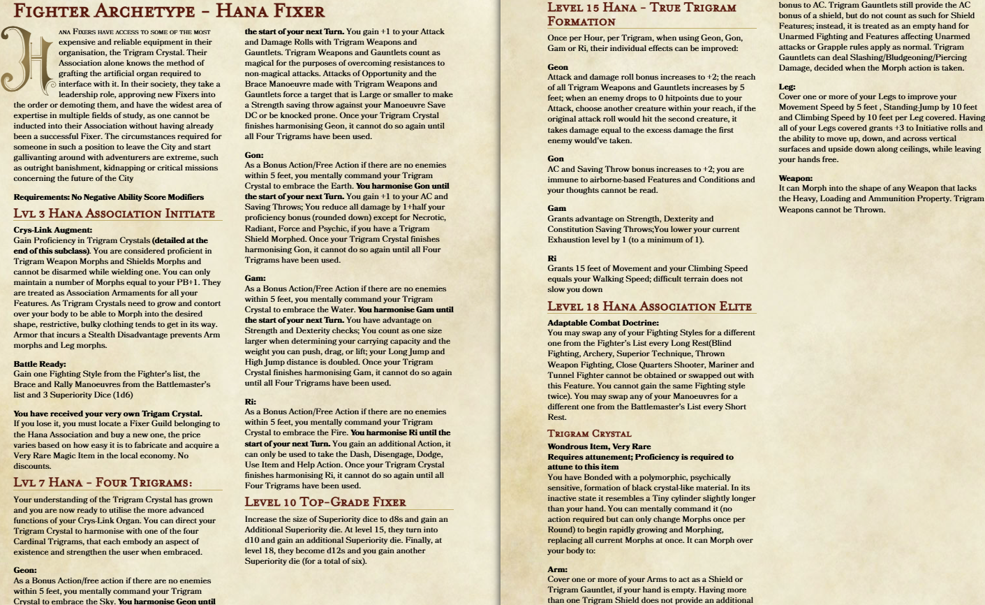>>97935562>TQHonestly the subclasses this time are npt that bad compared to the abhorrent dogshit that was hell knight. Lament barbarian actually looks like a good concept thematically with nice crowd control. Primordial warlock's 3rd level feature seems retarded but the 6th level one is pants on head retardedly powerful a permanent +4/5 to AC does not seem reasonable.