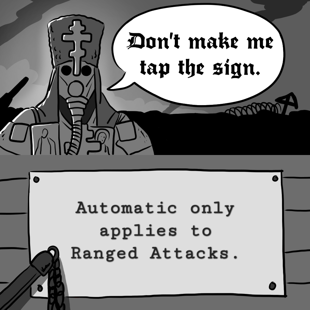 >>97942110Pic rel comes up all the time with new players with automatic pistols it's kind of a thing but is it just a total failure of reading comprehension?