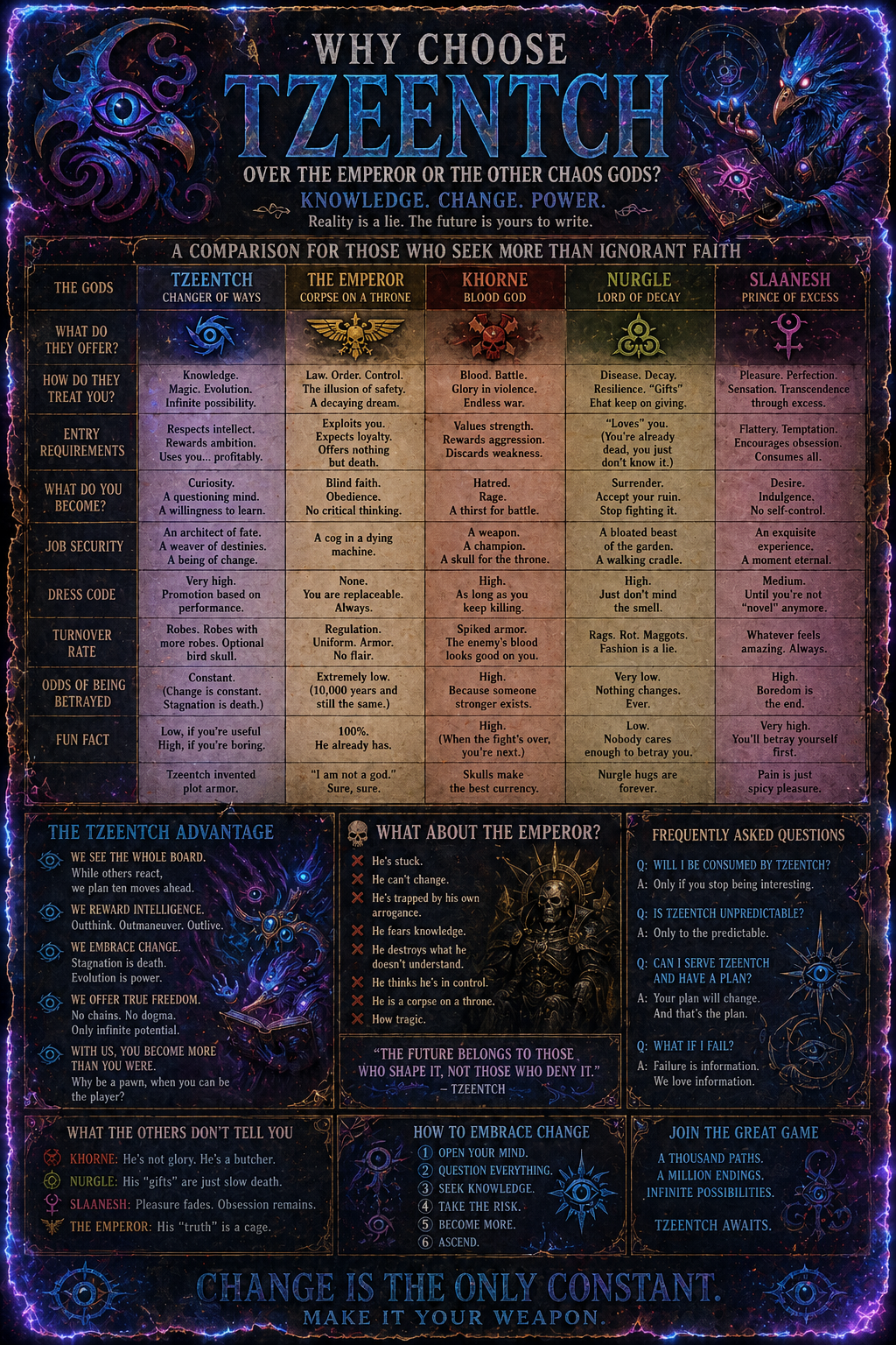 >>97947920Although thinking about it, Tzeentch and Slaanesh get along a little better than with the rest so maybe it actually makes sense in the context.