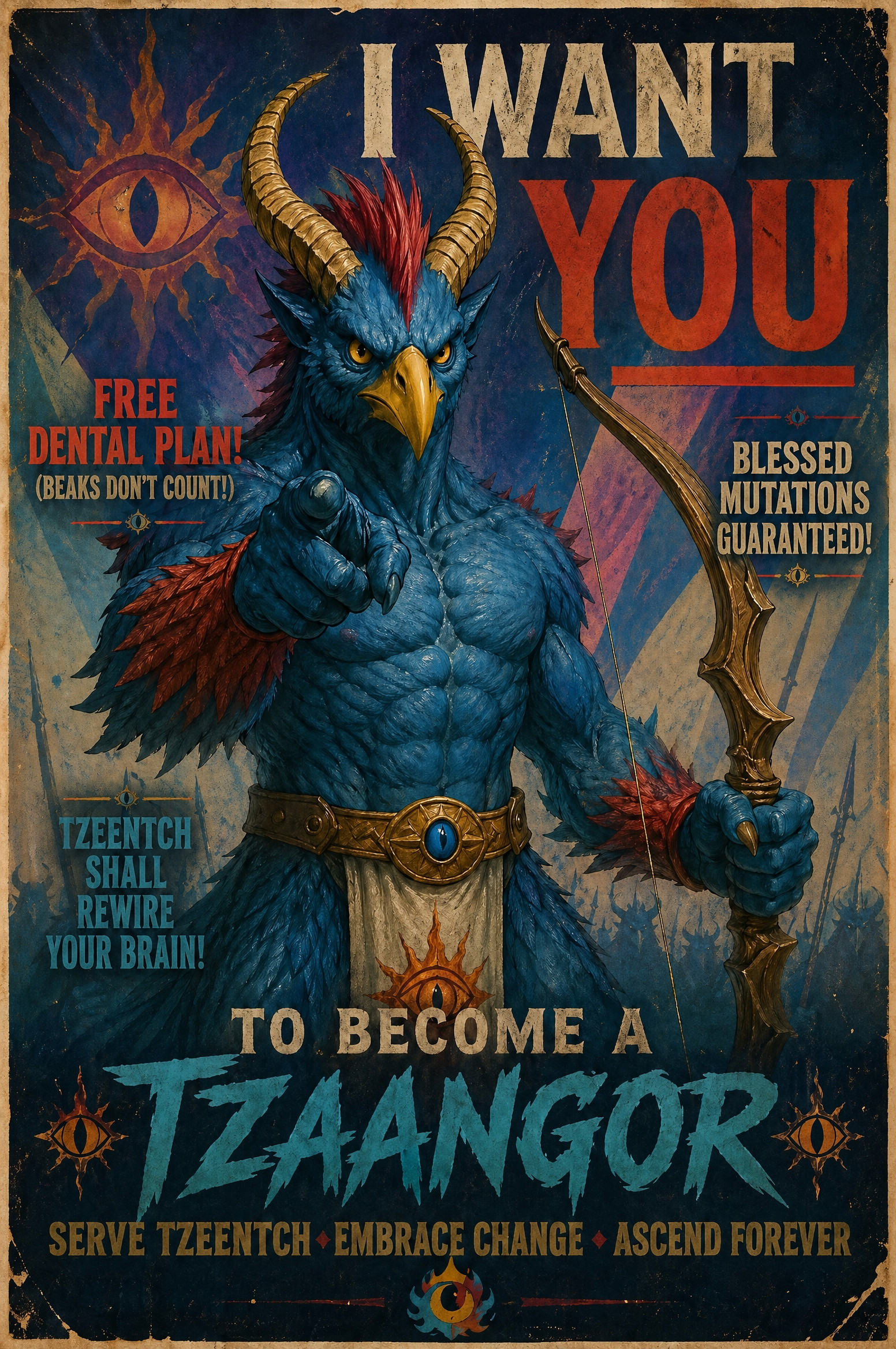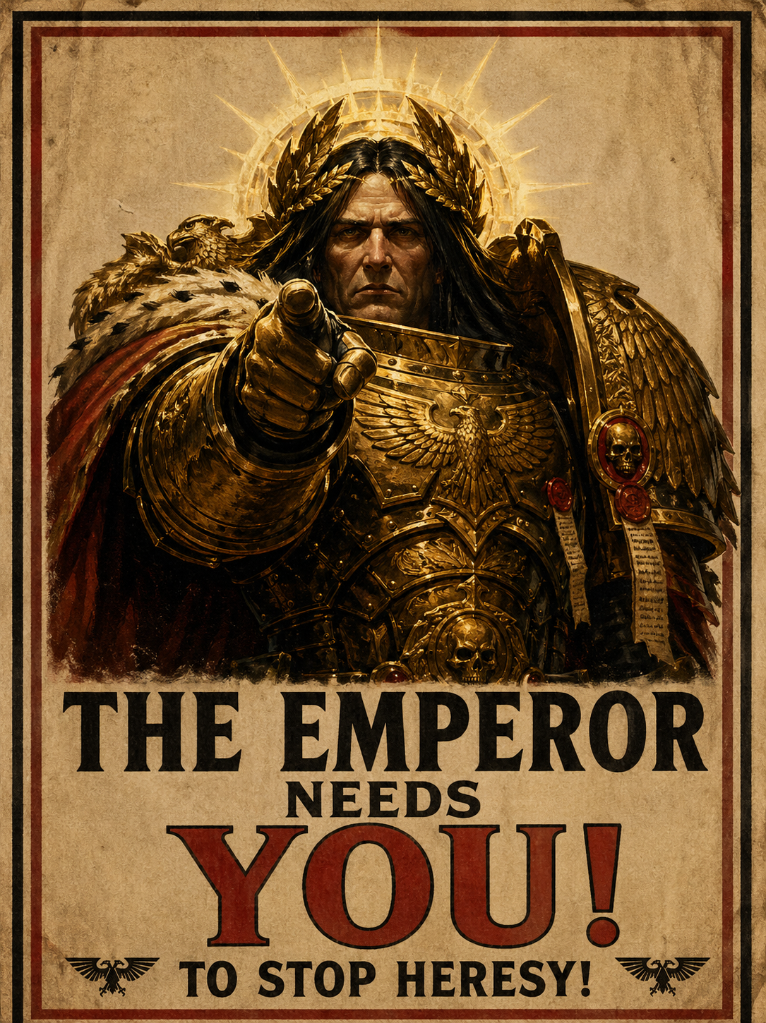 >>97947887>>97948070Prompt, pretty please? Or perhaps posters for Vashtorr the Arkifane and Magnus the Red?