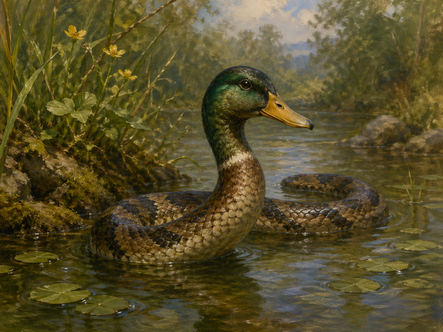 >>97949750Not that anon, but the snuck he's referring to is an old /slop/ meme: A creature with the head of a duck on the body of a snake.