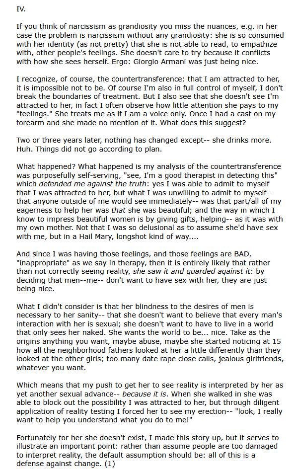 If you want a Last Psychiatrist thread why don't you just go make one on /lit/, or /r9k/, or /x/, or some other insufferable hell hole.