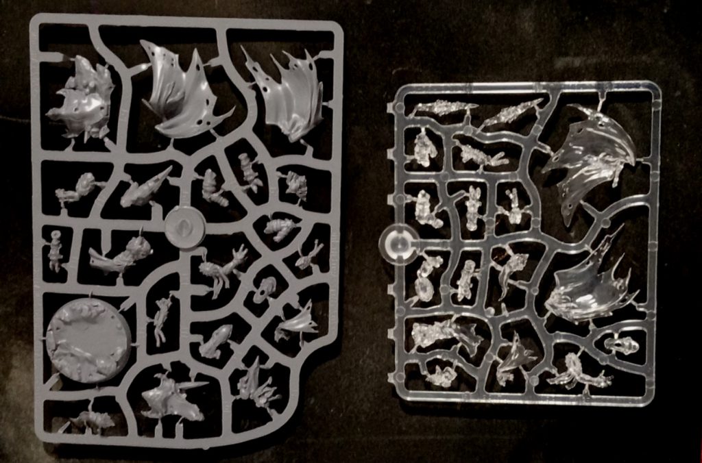>>97960624They're hard plastic on sprues. About 1/3 of the sprues and bits are translucent, like all the visors and cloaked units and energy and shit.