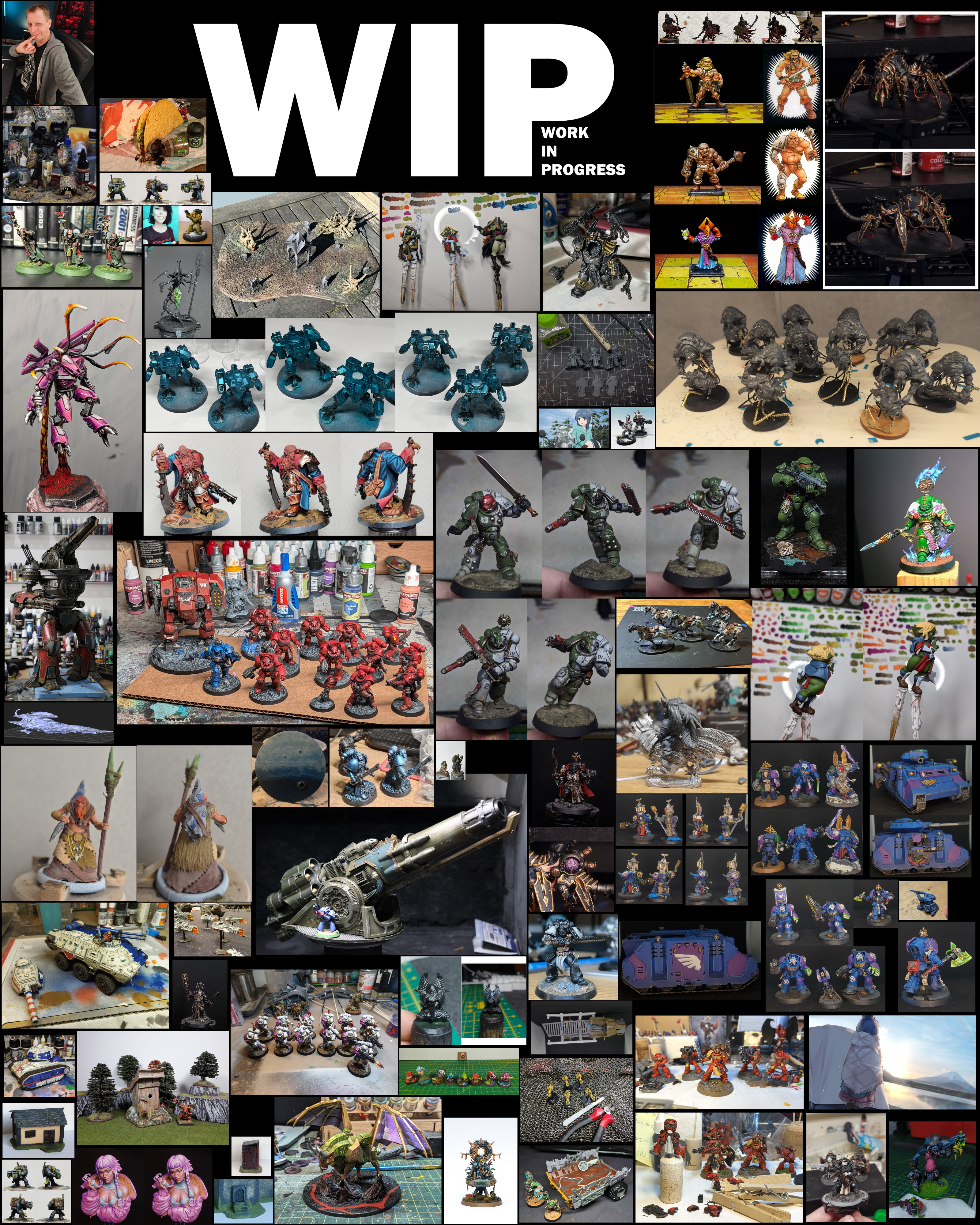>>97964736>We'll see if OP seems my stuff worthy for the collage then.I generally include at least one picture of almost everything from the thread that demonstrates what we've been working on or have completed. If it looks like I excluded a picture it's likely:-- A meme or reaction image that doesn't have one of our models or Rin from Yuru Camp in it-- An animated GIF or WEBM that doesn't translate well to a non-moving image format-- Multiple pictures of the same model where it's hard to tell what's been done, so they look like duplicates-- Pictures from one anon that have been marked up by another anon, but show essentially the same thing-- Pictures that are of models not painted by us (GW webstore shots, past Golden Demon winners, etc.)One of our anons even came up with a script that makes it really easy for me to build a collage in my browser.