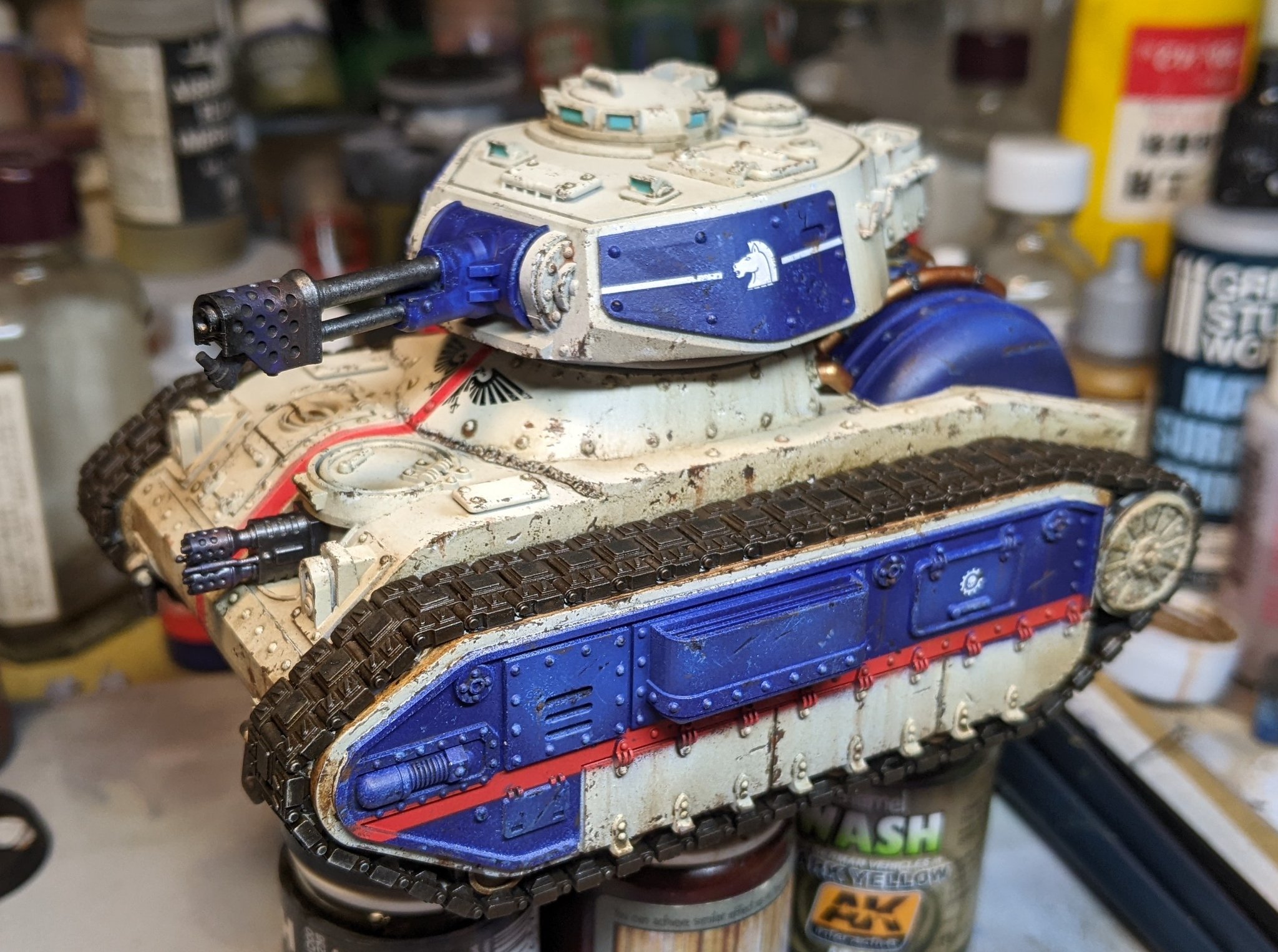 >>97963097French stuff is one of his biggest influences i think. He even did a "grim dark" version of the AMX13 light tank. Besides his generally good understanding on how tanks should look like, so they feel "real" the french influence is why his stuff always looks kinda unique, because most others go for the obvious german, russian or american designs, or they stick super close to what GW does.