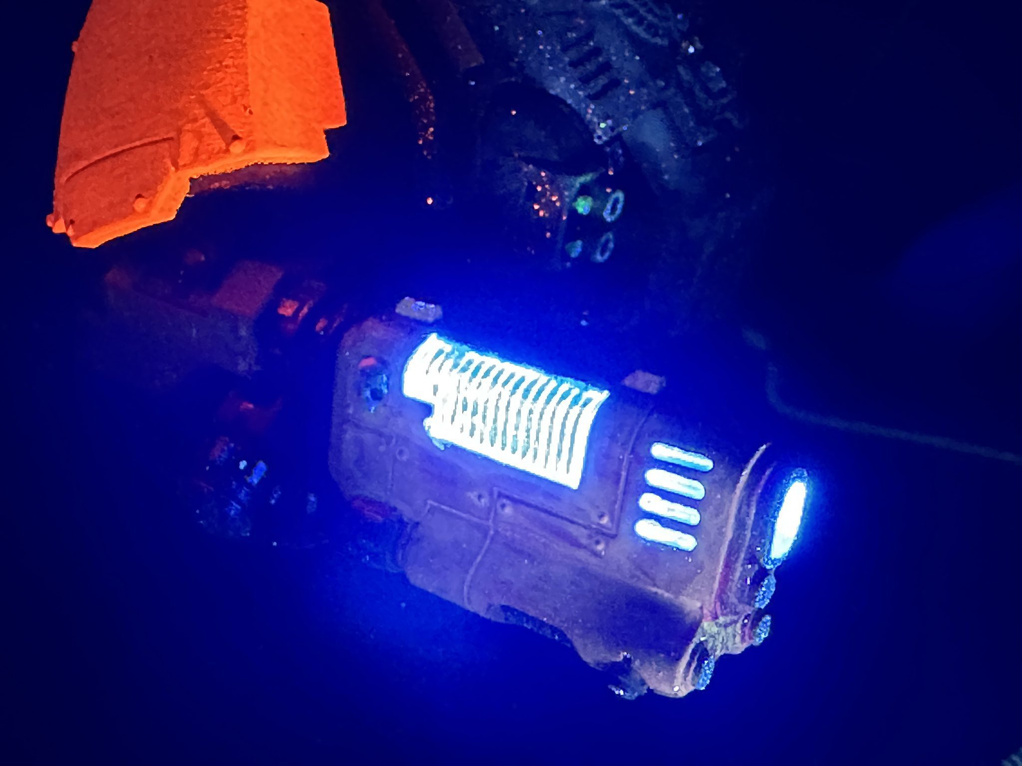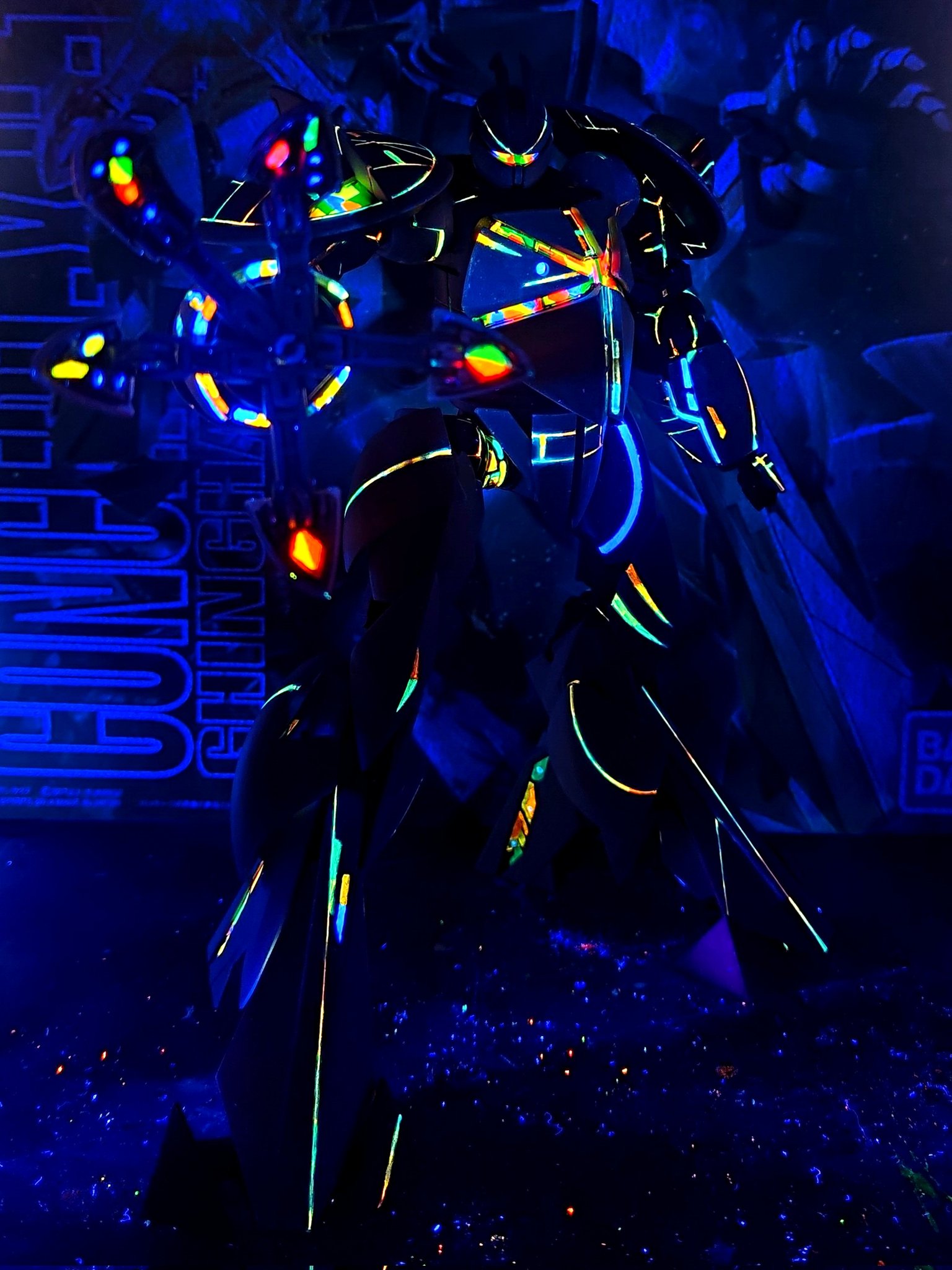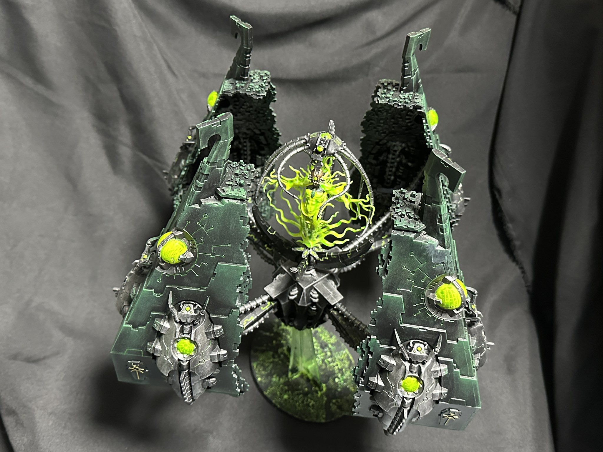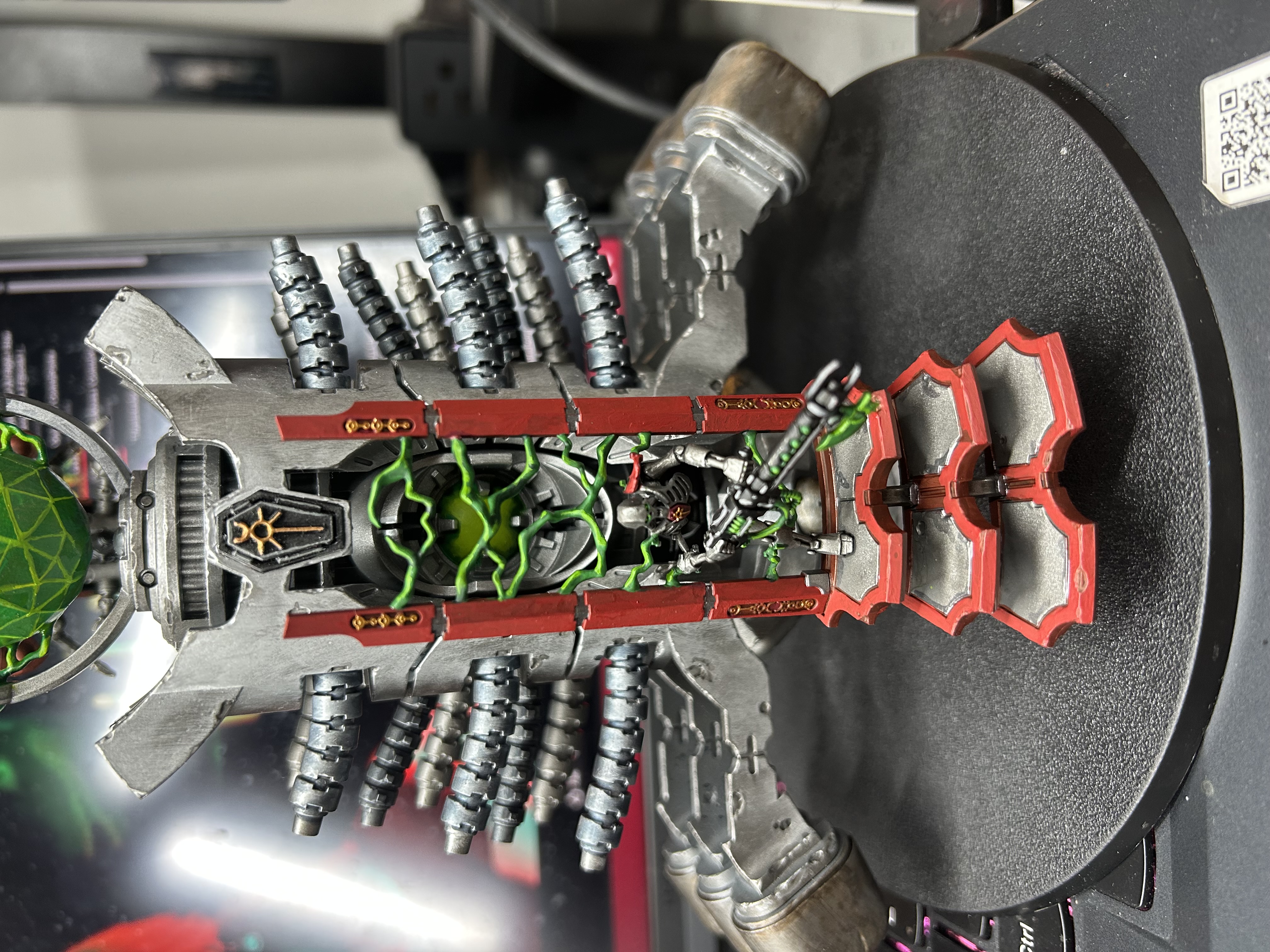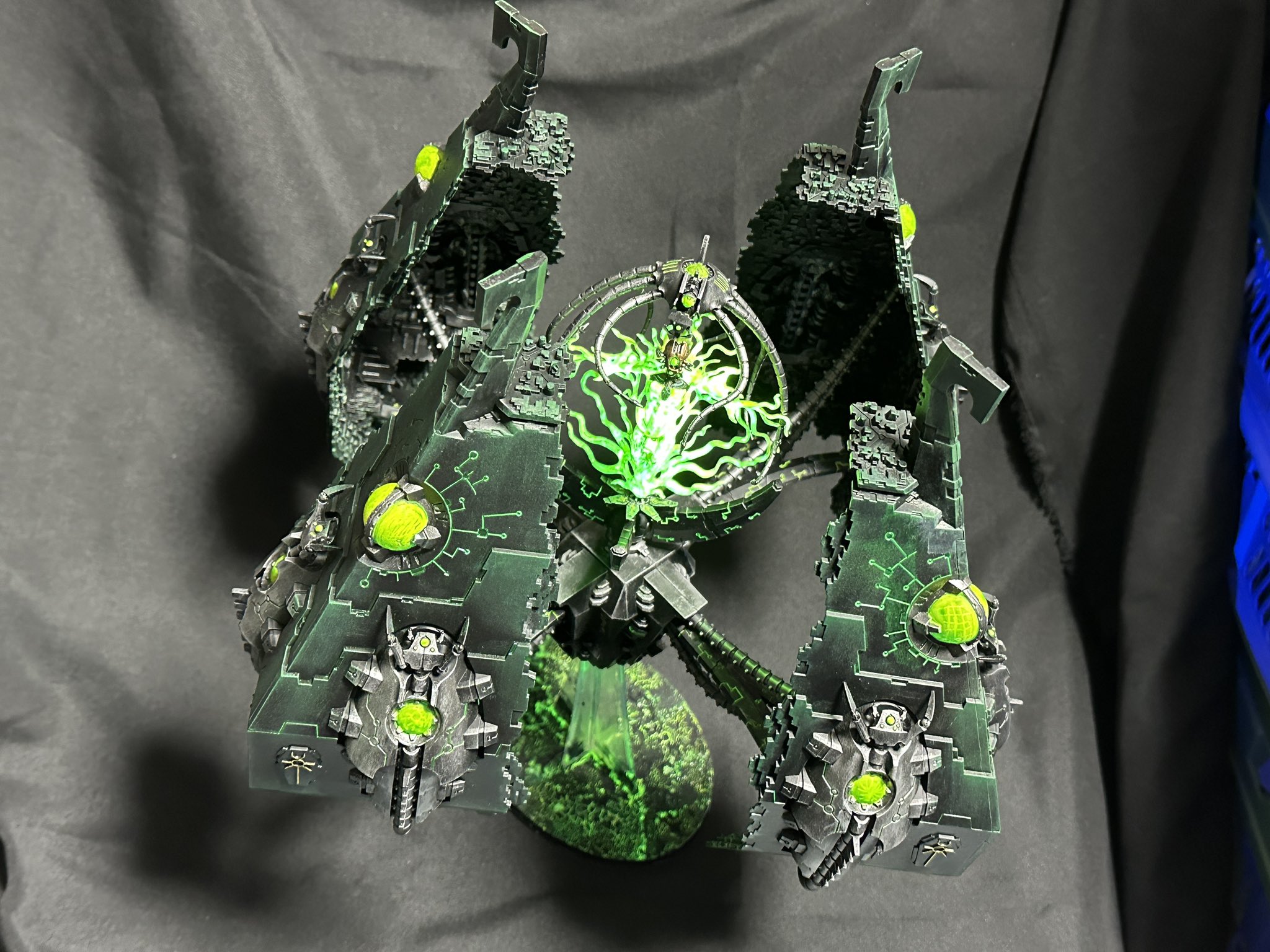 >>97966954I really need to do updated pictures of my carnifexes, but here's an old WIP of experimenting with paint schemes. I just used a tiny black light torch that I use for resin touch ups, but the effect can still be seen with lights on too. Fluorescent paint with crackle on top was a fun effect for the carapace, but I wasn't a big fan of the plasma glows