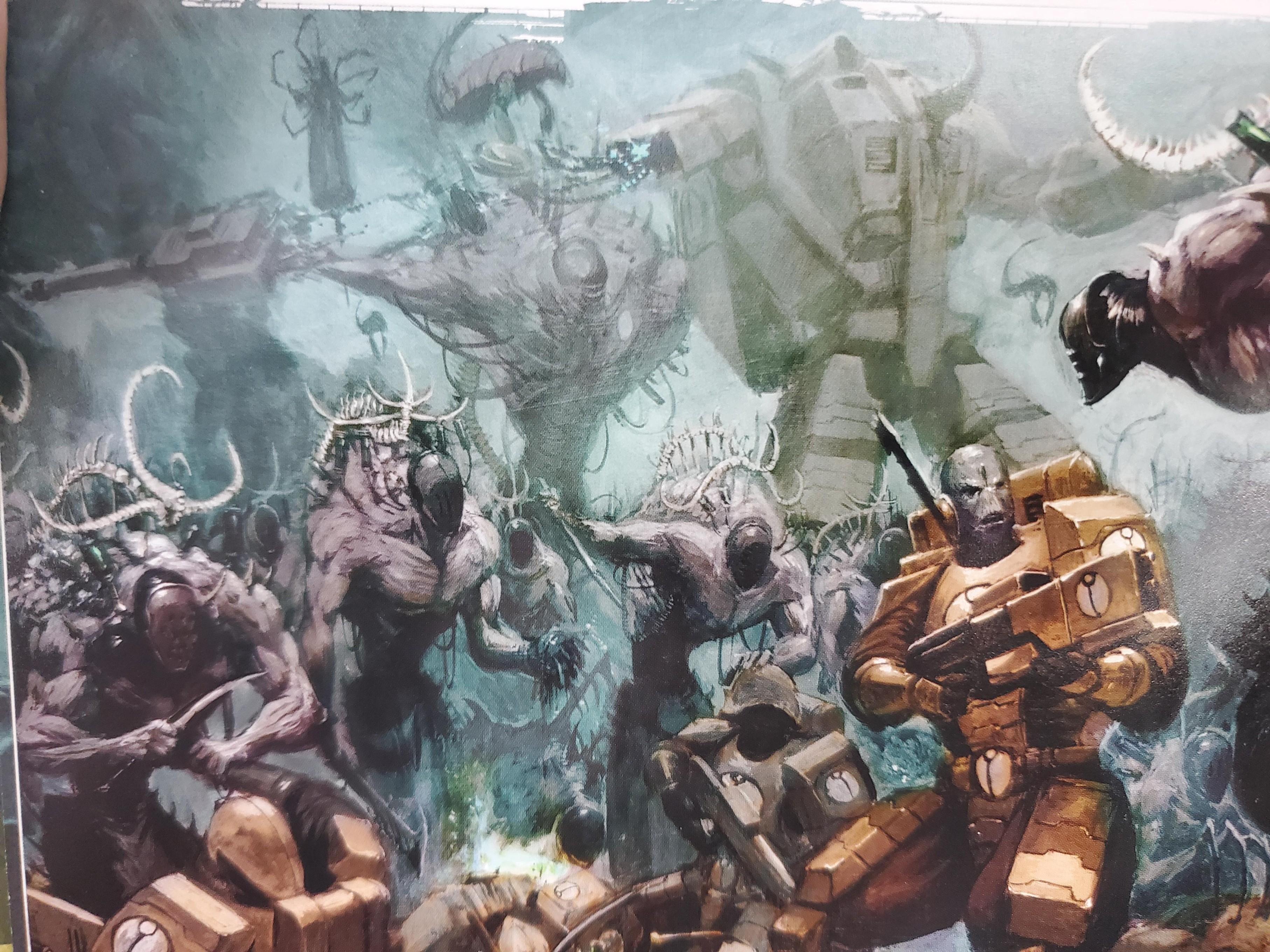 >>97970543The tau didn't get they were a conscious intelligent species at first, even now with the "translation helmets" it's described as not like talking to one individual but talking to a hive of bees as a whole at any given moment, they have a very alien mentality, and they still behave as a swarm more than as individuals, with the tau handlers having to goad them to make the more tactical decisions on the field or restrain their swarming instincts, like throwing themselves at a threat regardless of self preservation, to outsiders they look like humanoid shaped beasts.