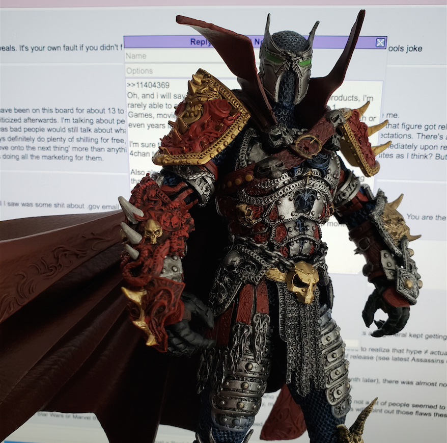 >>11673390>Mythic Legions Genpretty sure it was just the Mythic Fantasy or whatever it called itself. Like i said, it merged with the Fantasy General because some fanboy wanted to keep it on the forefront despite most of the fanbase quitting after 4H shit on everyone.>not PVC that's being priced as if it wasn't plastic.... man, there's a whole world you don't seem to be aware of. There's a shit ton of PVC figurines out there that are way beyond McFarlane's prices at the same level of quality and that's actually part of what made McFarlane so popular in the 90s, since even back then, there were PVC statueshit that was super fucking expensive with paint jobs that were pretty shoddy.McFarlane made collectible shit affordable and their stuff today is still pretty affordable, or at least costs less than what other companies sell theirs for (thanks obama).I get it if you don't like McFarlane's 7" figures, because i generally won't buy anything in that scale either. I also get it if you don't like the mold reuse, but they're not any better or worse than other companies who do the same thing like Mattel, Hasbro, Jazwares, etc.But like i said, what you see is what you get from McFarlane, because almost everything that McFarlane ever shows off are production figures. You almsot never see handpainted prototypes or 3d renders that Hasbro and other companies show off to get people excited about their products.Pic is my Medieval Spawn from the other year. when McFarlane was showing off their Kickstarter, almost everything was already finished and it's a glorious return to the level of paint we were getting in the 00s. Probably the best figure I've bought in a decade. ... which reminds me, i need to buy his Lilith.