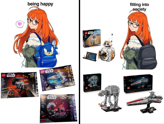 Lots of LEGO "fans" online are also insanely self conscious about collecting toys and has to really convince themselves that they're not toys they're "adult collectible models"