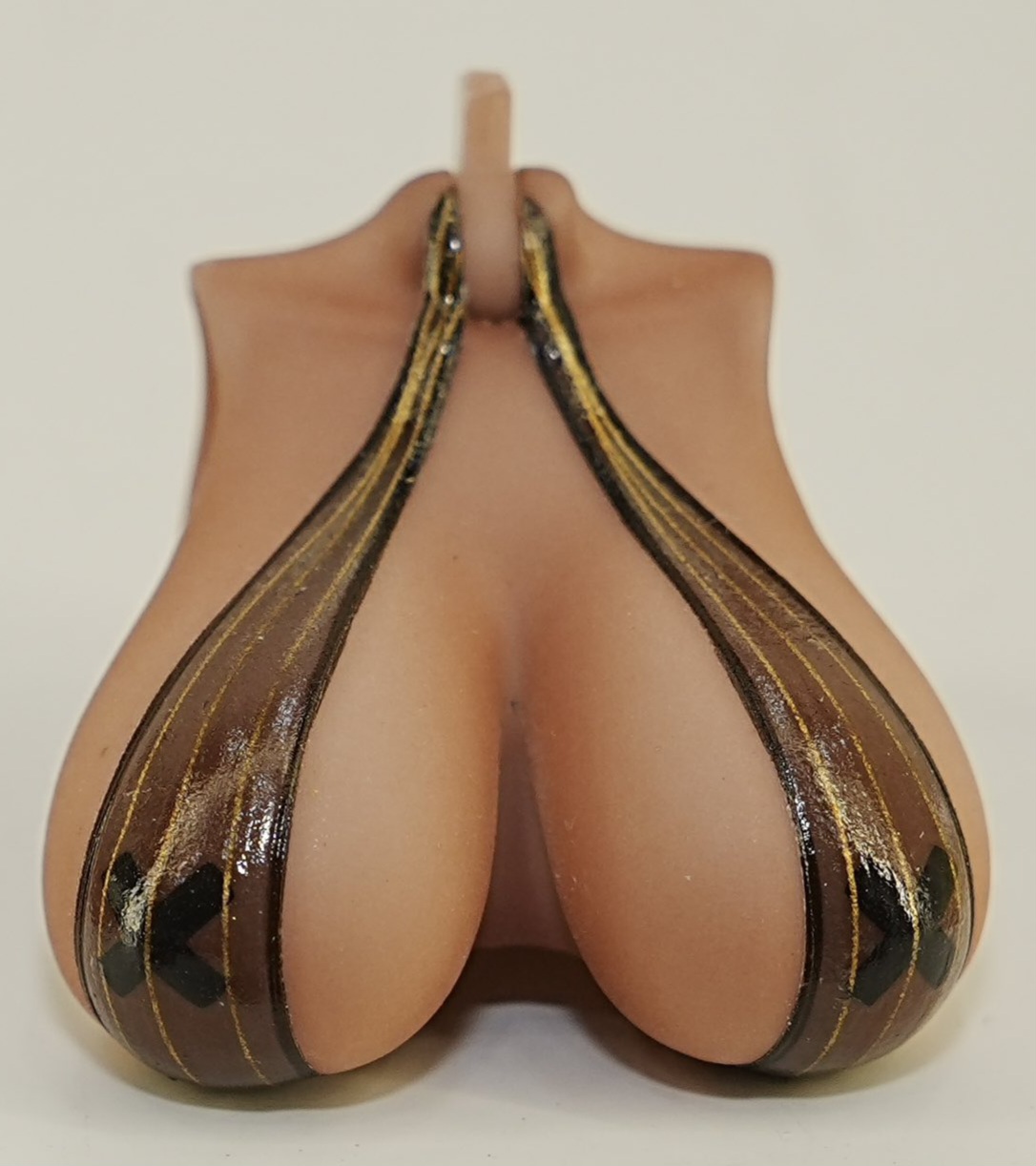 >>11751651Look closely.It's painted on top of her tits. The top is part of her sculpt. They painted the nipples, then the X, then used a shiny paint for the translucent light brown layer. The trim lines around the edges leak on to her skin in places.She's like Grisa, its part of her so she's gonna need custom parts for bare tits. A shame that only her statue comes with the bare ones...