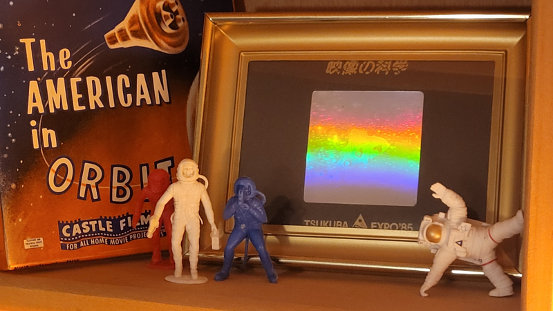 Ah. Finally a related thread to post this in. Some years back I was looking up hologram cards and toys on a Japanese site. I found this neat hologram print from a Japanese science expo in '85. I dug the ufo hologram and put it with a buncha space and ufo stuff I have.