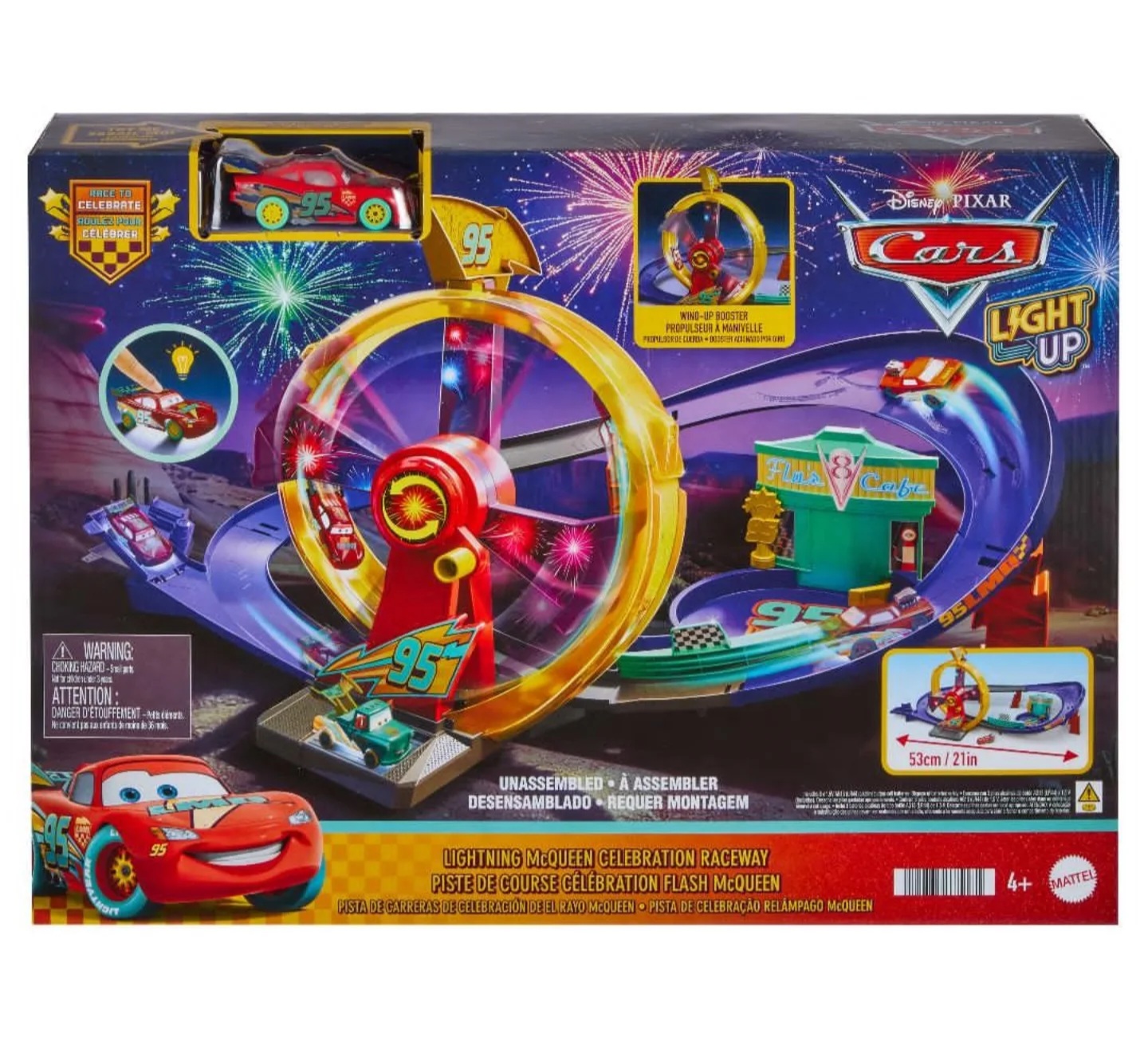 Here we have the first look of the new Lightning McQueen Celebration Raceway playset that will be released later this year. We saw the playset in full at the 2026 New York Toy Fair.