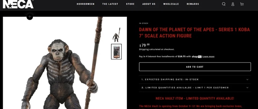 I wonder how many of these figures from the vault had only 1 or 2 of each to sell. I think I saw the Ripley/Jonesy suit sell out in what, 8 minutes or something? Belmont sold out quick too, which isn't a shock, as he "sold out" during Christmas too? Guess they found some more. lol.But yeah, just like the Christmas sales last year, whoever's running the drops is slacking on the job. Took them like 18 minutes after the hour to get their shit together and click the button to put a figure up.This is a pretty annoying, hot mess, the way it's been run. Like someone just said, say you buy... 5 figures from this scalp-fest... you have to pay shipping FIVE times, $10 for every hour. This stuff's bonkers, man.