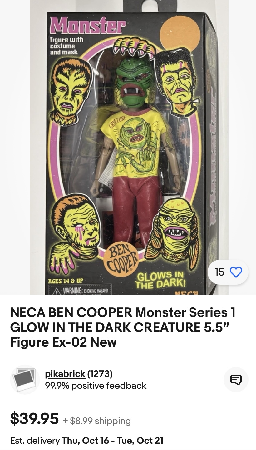 >>11592403But that Creature Ben Cooper is not a rare item, it goes for $40-$50 nowhere near $80.