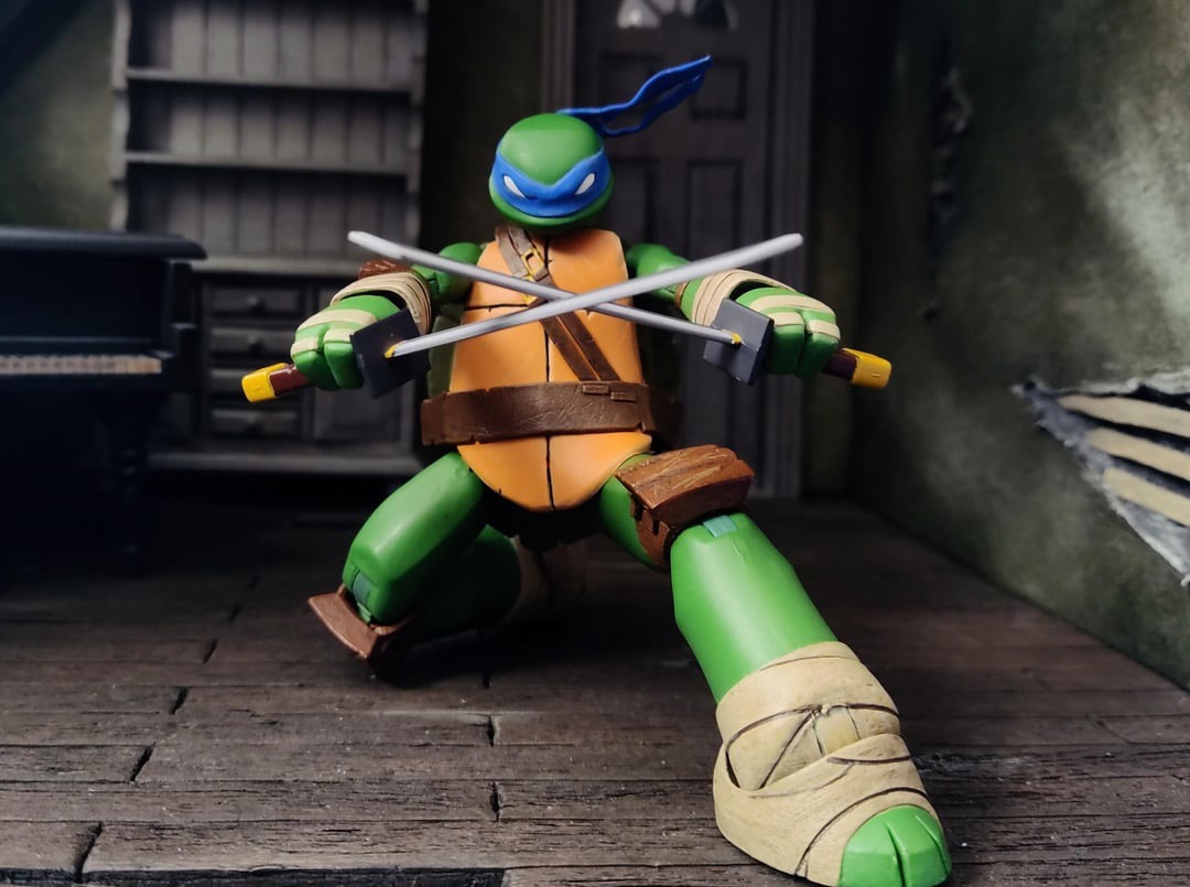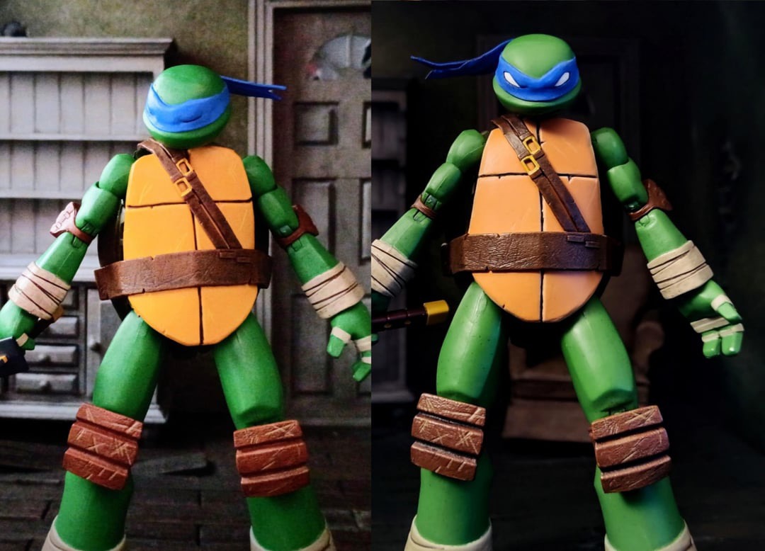 Saw someone’s customized 2012 Leonardo and wow, it improves the figure a lot and fixes all my issues I have with the NECA release. Left is before, right is after.https://www.reddit.com/r/NECATMNT/s/uTEYSjReyr>This figure is really amazing. The articulation is a bit wacky, but after upgrades it's a lot better. >The right bicep swivel on mine tore apart, so I had to use the screw method to replace it, turns out it felt a lot better and more study than before, so I also did it on the left arm. >The modifications I did are>Repainted mask+eyes >Trimmed the sides of front shell and repainted>Trimmed out more torso articulation at the joint>Replaced the hinge in the right sword holding hand with a ball joint, for vertical movement>Wired posable bandana in the back>I also separated the front shell from the left side completely, and the bottom, to allow more movement>The last image is a good example of before and after, especially for the shell. If you want to see more of this figure, and my work, follow me on Instagram Seething_customs. I'll modify the other turtles when I get them