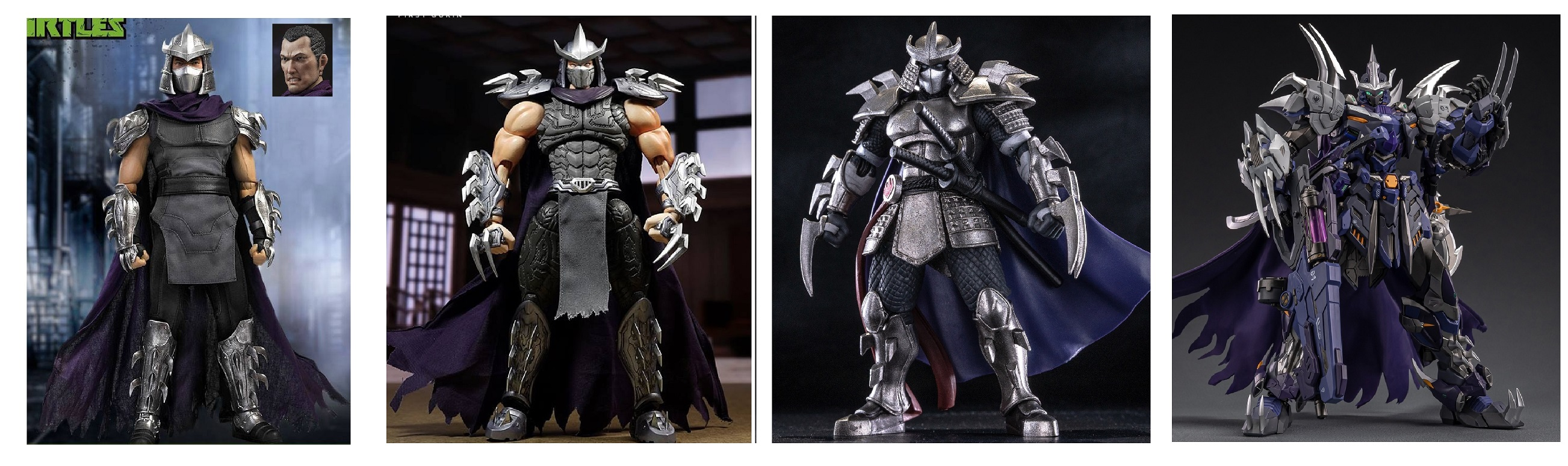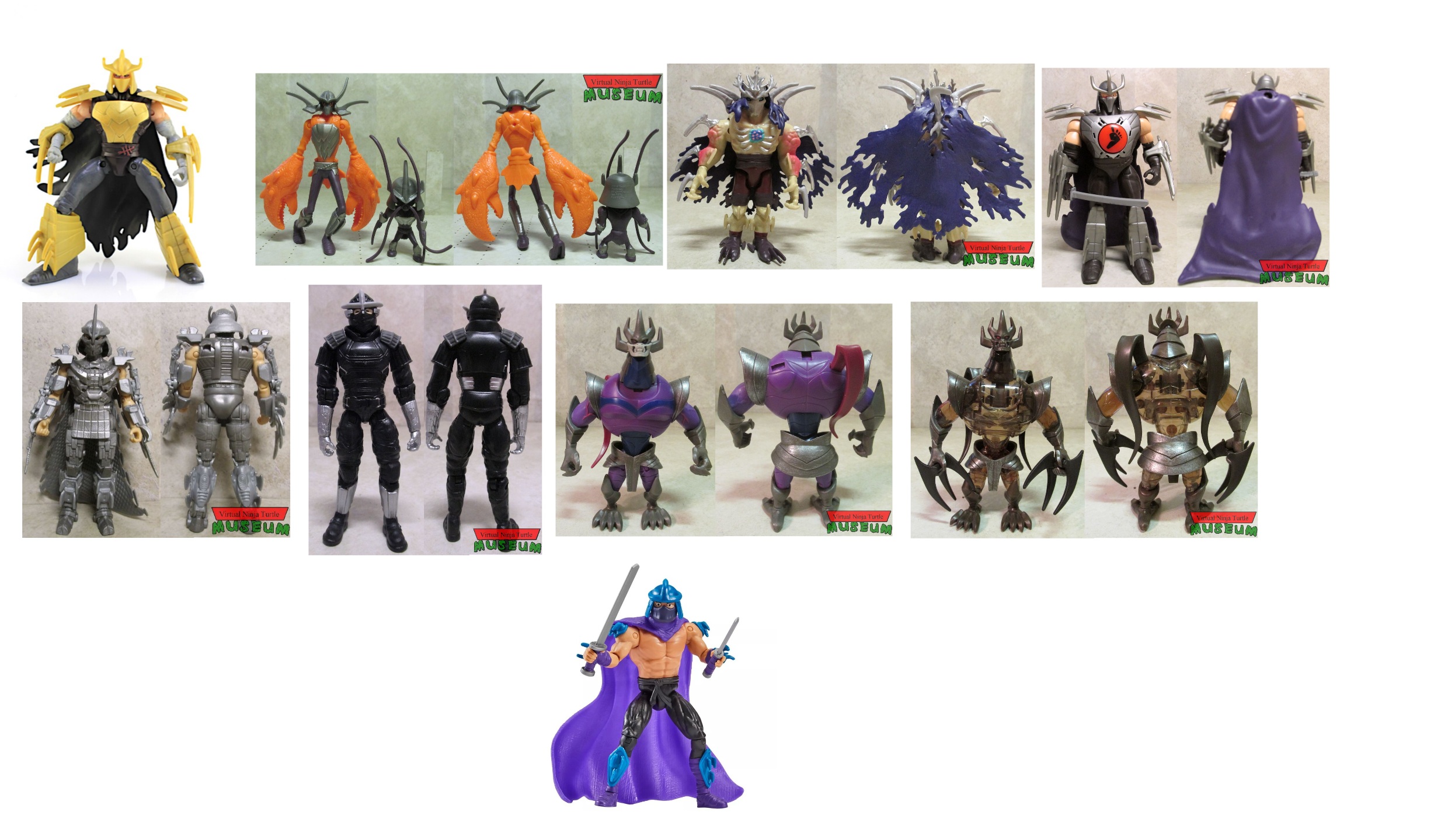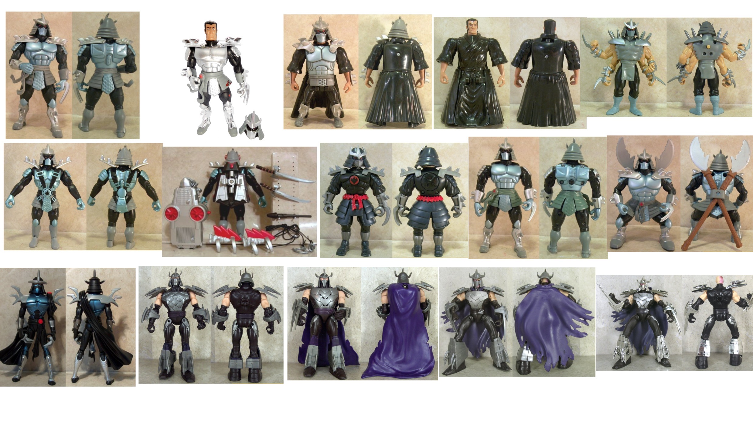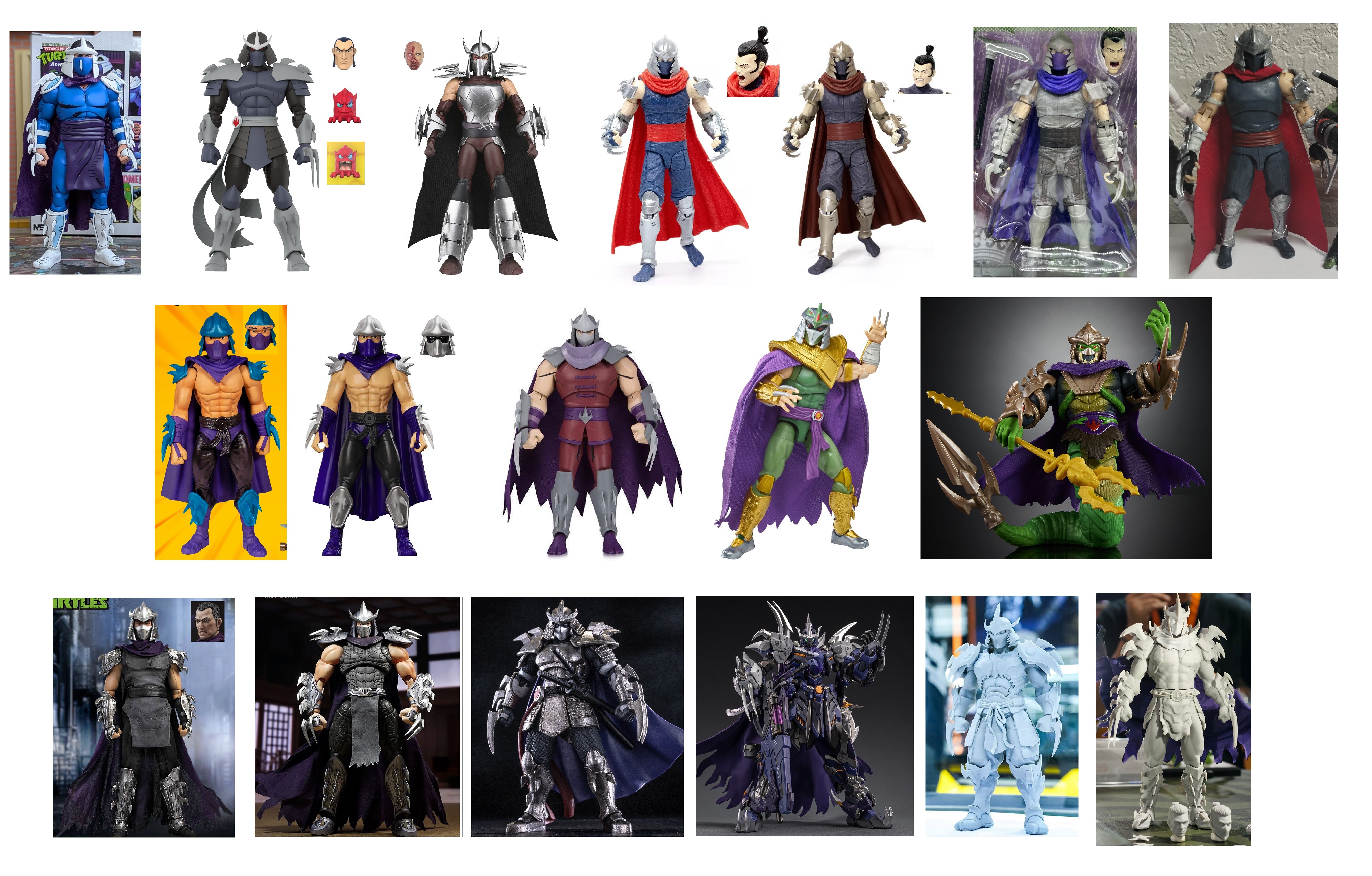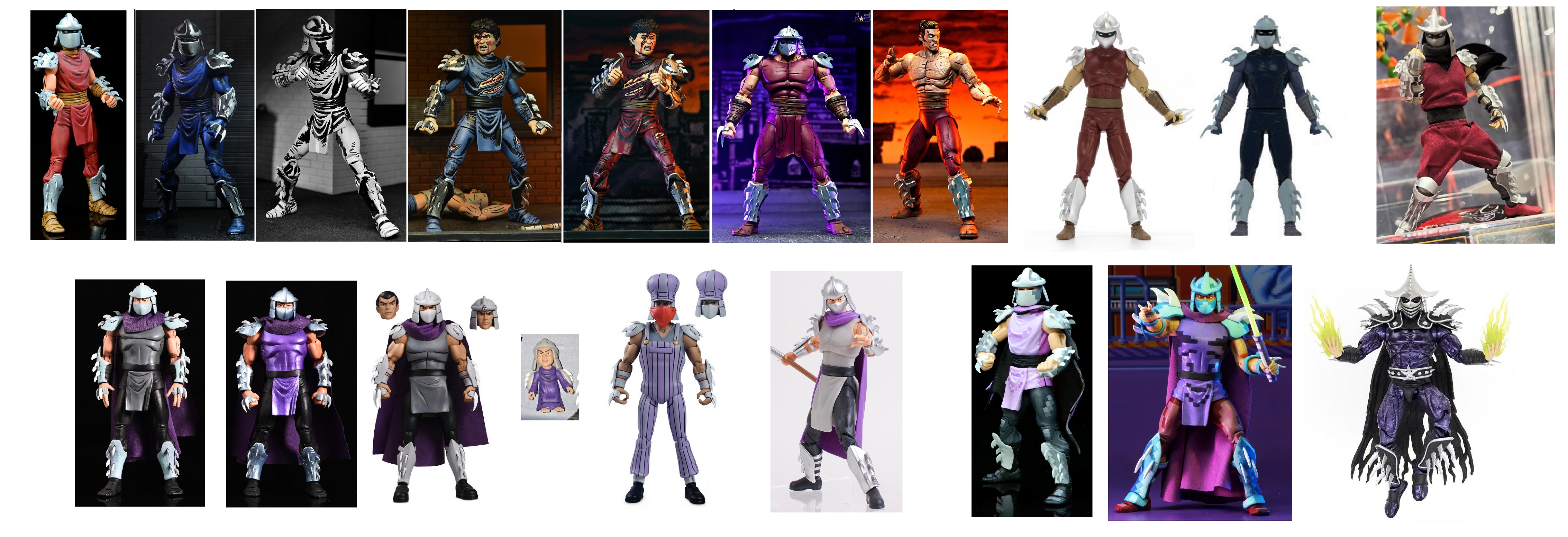 Every Shredder figure in existence. Enjoy.No to playmates of course because of poor toy quality. Also no 1990 movie version because he's just bad cosplayer in funny clothes.