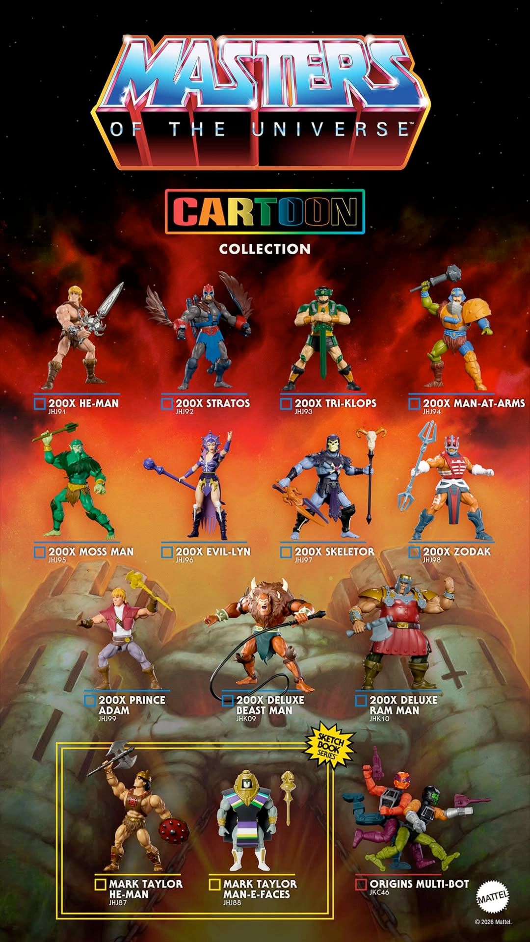 Origins/Cartoon Collection:>Sting-Or on sale Oct 21 on MC>Multi-Bot announced. Preorders on Amazon. Shipping in Feb>Dragstor leaked early at Oz Con. Still no mass release date>CC Swift Wind/She-Ra on MC September 24. Still available>Snake Lair crowdfund over. Pythonus failed to unlock>Lords of Power Castle Grayskull up for order on Amazon.>FRIGHT ZONE available from BBTS.>Wave 1 of 200x He-Man, Stratos, and Tri-klops up for preorder, deluxe Beast Man shipping now>Past MC exclusives still available on Mattel Creations.>Sketchbook Sy-Klone and Spikor both now available at Target.>Two-Bad is confirmed sculpted but remains unrevealed.>1 MORE Preternia character confirmed.Masterverse:>Up for preorder/in-stock and shipping now: Mantenna, Mosquitor, Anti-Eternia He-Man>Dragstor, Despara, New Eternia Keldor coming soon>Vintage Collection releasing Teela and Man-At-Arms>BIG sale on unsold Masterverse figures at BBTS.Crossovers:>Skele-Shredder available on MC.>Megatron Skeletor and Bumblebee Man-At-Arms have shipped.Optimus He-Man and Evil Ghost of Starscream on pre-order.>Thundercats wave 3 is Panthor-Man, another Panthro, another Lion-O.Mondo:200x He-man up on BBTS if you missed it.Archive:https://archive.palanq.win/toy/search/subject/MotU/TQ: Are you balls deep for 200x, just dabbling, or not buying the same characters a third time?