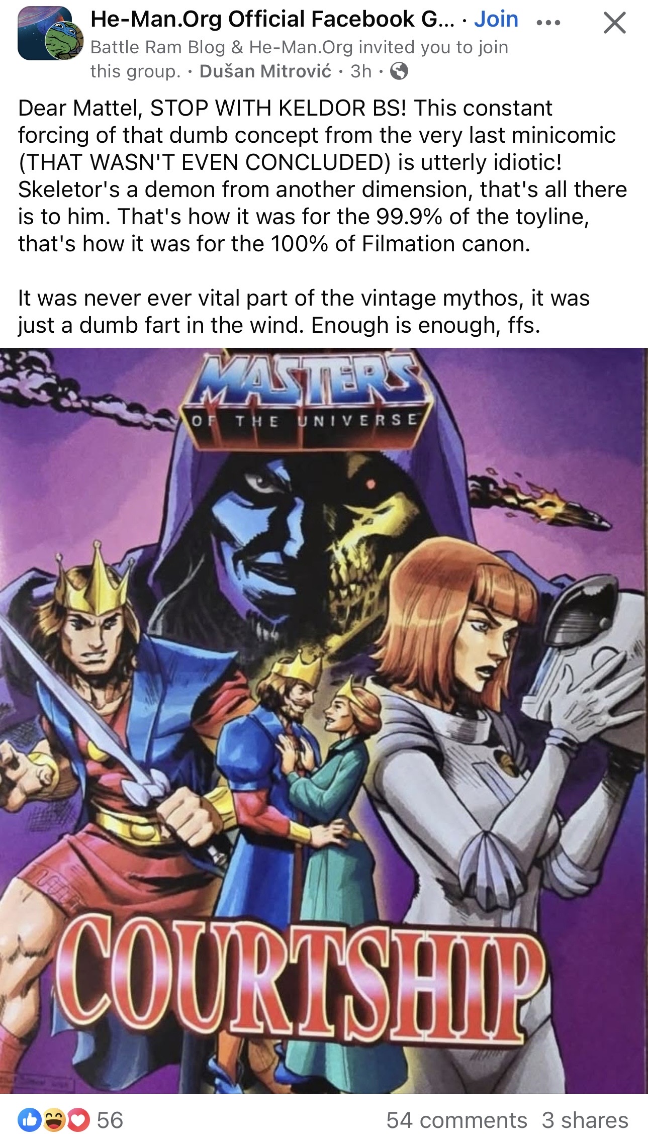 >>11600597It's not about Eldor. It's about what he represents - a simple promise.Mattel announced this years that they'll make 3 biggest Powers of Grayskull characters. PoG like has only 3 real characters, 2 if we're being honest because Sharella didnt had a prototype figure in the 80s.If they wont deliver now Eldor, they'll officially announcing they're dedicated to never finish anything. No more snarky comments, this is a statement. We're not giving you Two-Bad, Scorpia, Strobo, Thunderkittens, CC Kobra Khan, Marlena, Goat Man or whatever you feel you need to complete your collection. Enjoy CGI Cartoon Collection next year, we wont make Ram Ma'am.