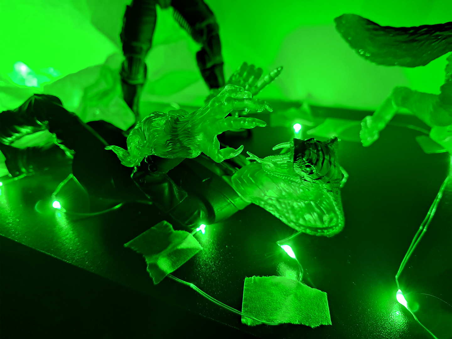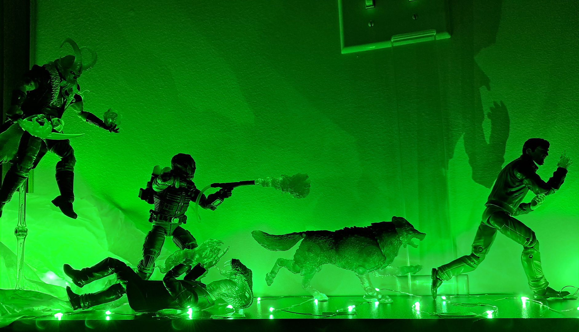 I got my Halloween display set up. Next year I'll try and disguise the lights a bit better and use black tape, although hopefully next year I'll be displaying my 1/12 Ecto 1 (and I'll have my Ramen street diorama by then too).