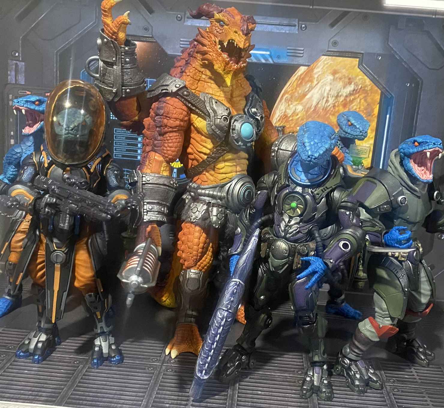 Up next we have the desert snake man with two different snake heads and a different reptoid head.