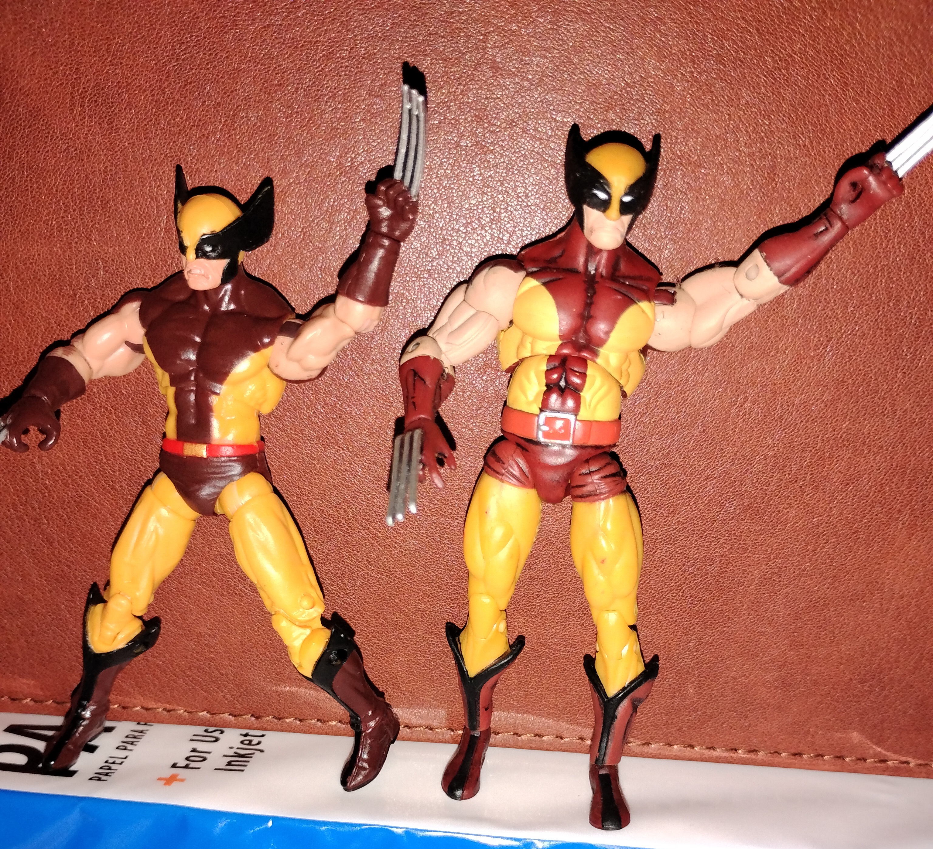 >>11612136Besides coming with a darker brown costume color, the biggest change is the claws. The SW Wolverine has spaces between the claws but the three pack version has a tiny bit of black plastic between the claws, ensuring they don't bend or warp. The three pack also has a frowny face snarl while SW Wolverine has a more neutral expression. And the three pack has a closed fist where the SW Wolverine has an open hand for holding things