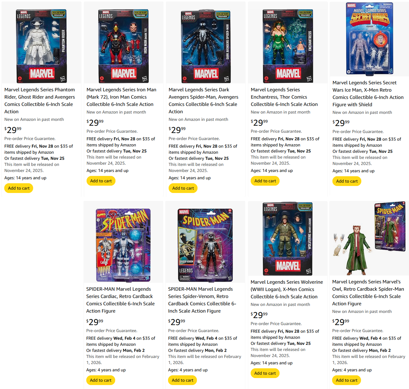 Previous thread >>11598030-Marvel Legends Retro Spider-Man wave solicited (all major retailers)-Marvel Legends Deluxe Nimrod Announced-Mafex Wolverine (Masked Version) Solicited-SH Figuarts Gamerverse Spider-Man cancelled in select Asian regions-Marvel Legends Made to Order 12in X-Men 97 Apocalypse Solicited (Pre-Order open on Hasbro Pulse)-Marvel Legends Executioner BaF Wave solicited (Fan Channel)-Marvel Legends Black Bolt/Triton 2 pack solicited (Pulse/Fan Channel Exclusive)-Marvel Legends Medusa/Gorgon 2 pack announced (Pre-order 10/21 @ 1PM EST, Pulse/Fan Channel exclusive-Mafex Gambit (comic ver.) announced-Mafex Cyclops and Magneto reissued-Marvel Legends Mini Comic Wave 2 solicited (all major retailers)-Marvel Legends Gamerverse Punisher/Nick Fury 2 pack solicited (Fan Channel exclusive)-Marvel Legends Deathbird/Gladiator 2 pack Solicited (Fan Channel Exclusive)-Marvel Legends Secret Wars Iceman announced (Fan Channel Exclusive, pre-order 10/7 @ 1PM EST)-Marvel Legends Starfox/Champion of the Universe 2 pack solicited (Fan Channel exclusive)>Updated Marvel Legends Checklist: https://imgur.com/a/YAVUq40>Archived Threads:https://archive.palanq.win/toy/search/subject/Marvel%20General/>Searchable, Tagged Database For Marvel Legends Sorted By Year: https://figurelist.co/marvel-legends-checklist