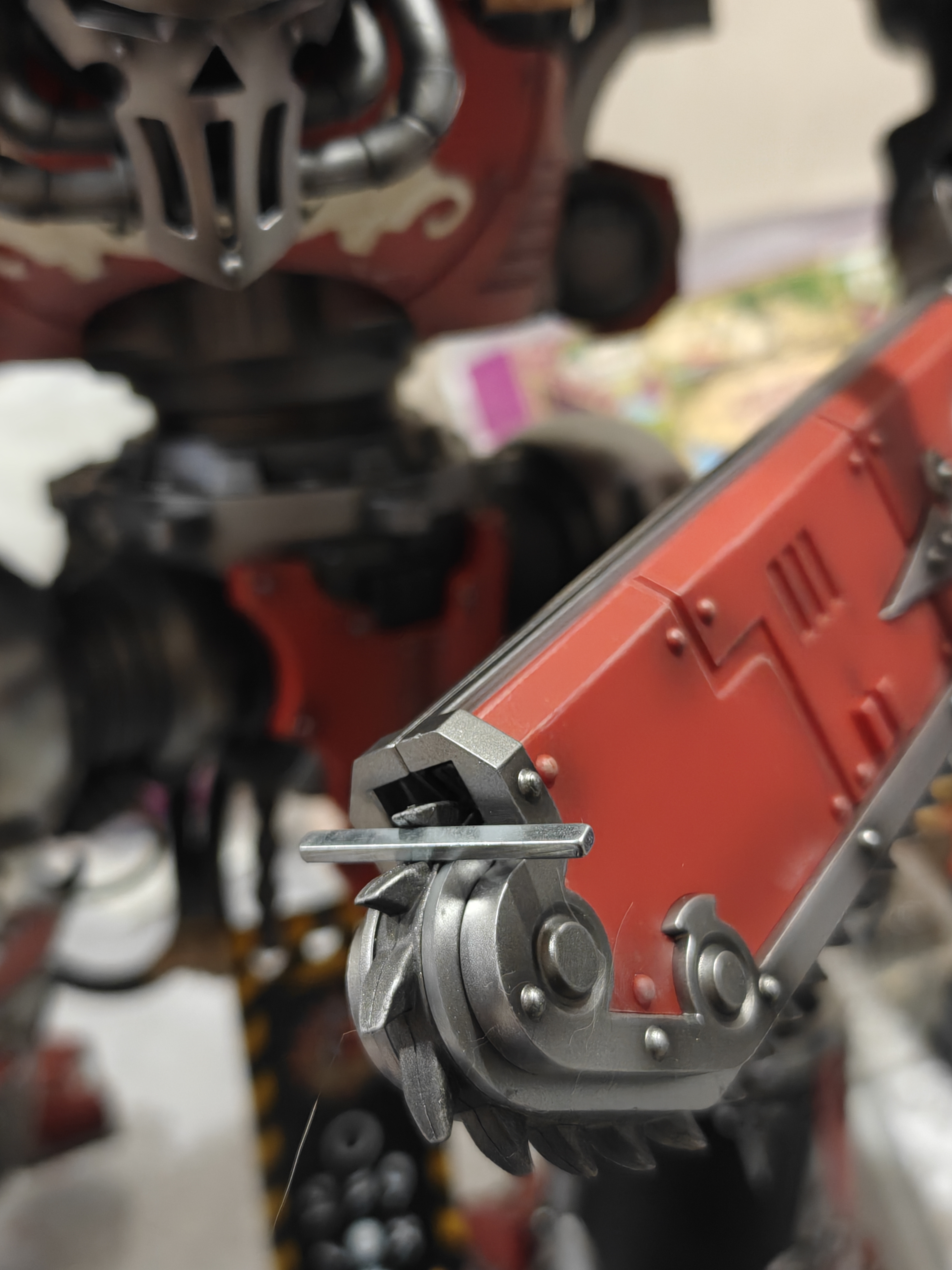 The death guard look pretty great, I'm tempted to grab the terminators. I like the colorful grossness, I would not be a fan of them being more like McFarlane gore toys, those always put me off. >>11614437Like the other anon said, that's your magnet to turn the led on, I think it's long and thin so you can slip it through the visor easily. And no, you have to bring your own battery. I already had some from another figure that uses the same gimmick. I just keep the magnet under the little fanny pack panel in the back of the Knight. Brush the dog hair off your chainsword btw.