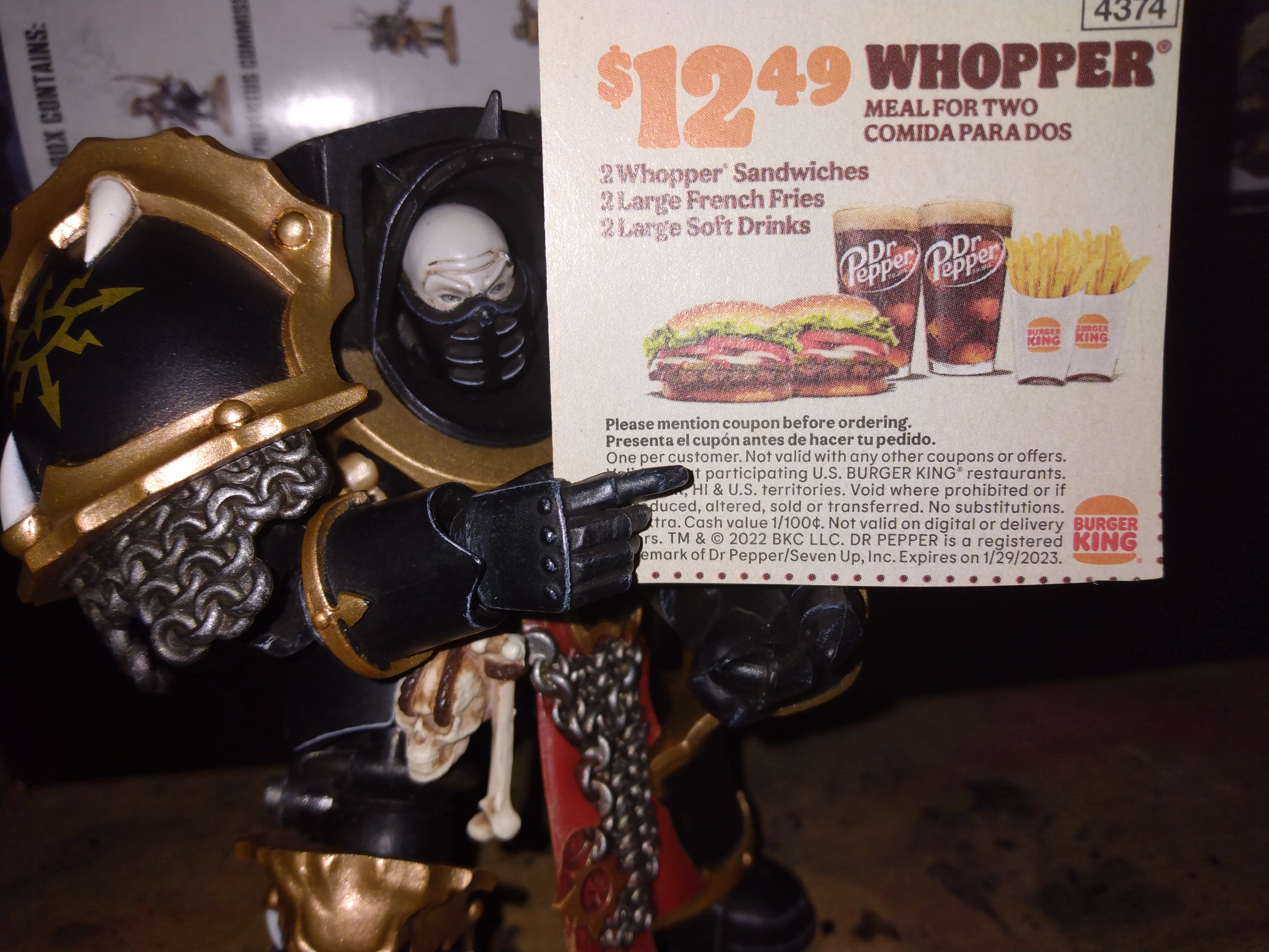 >>11636739>if you don't reply exactly to what my new goalpost is, then you're a schizo!i mean, you bring up the third worlder posting hsi burger king coupon and how i totally made up that it was a year old, yet when i post the screenshots showing the original 2023 posts with the 2022 coupons with outdated prices... somehow it's not about what was posted? zuh?and when i even mock the entire situation about what the original argument was about and you guys need to create non sequitors (like pretending to eat at burger king) to defend Joytoy fucking up the scale... that's not commentary on what was posted?Only in the WH40k general is responding to what's actually posted with facts is it considered schizophrenic.