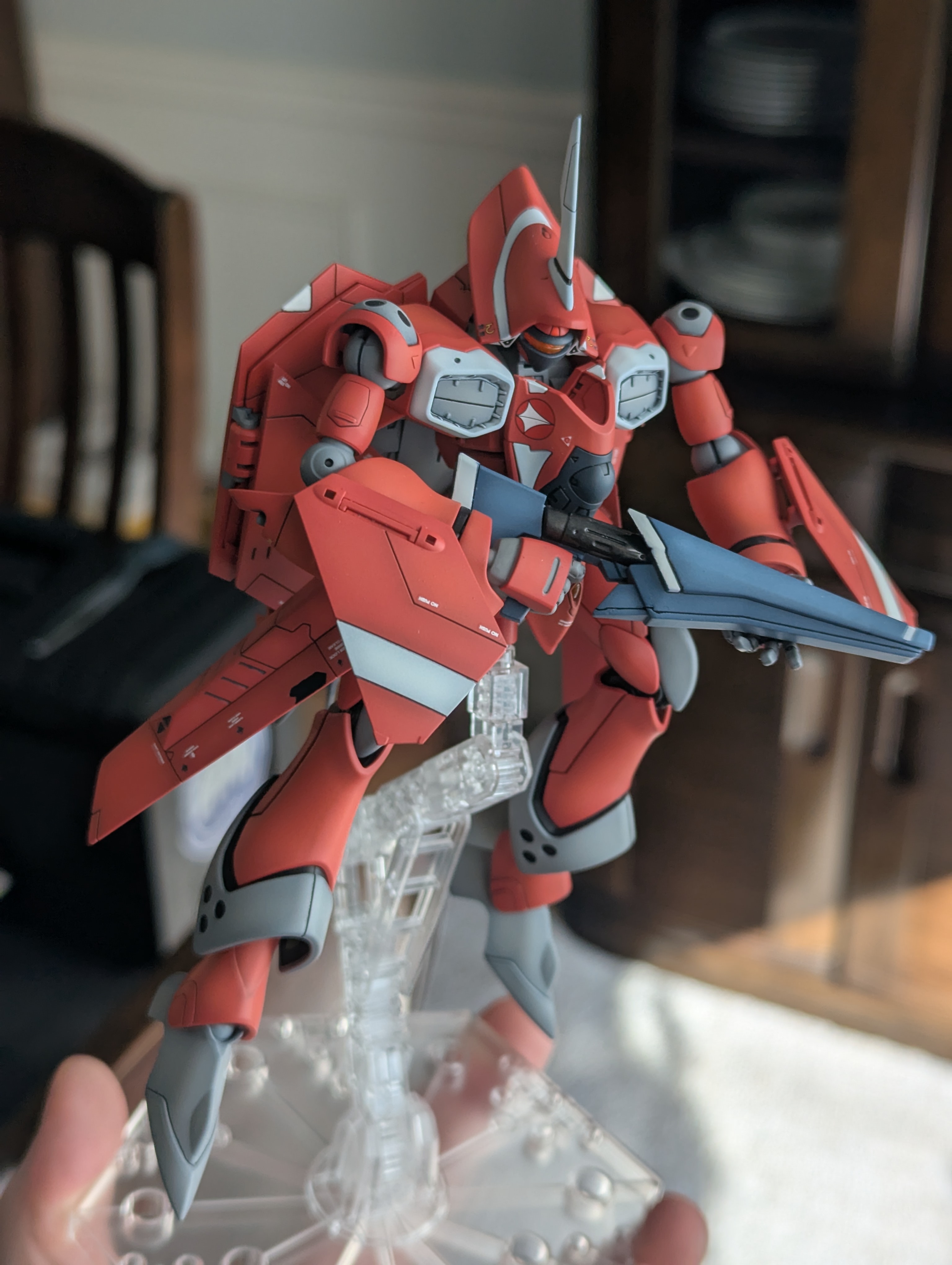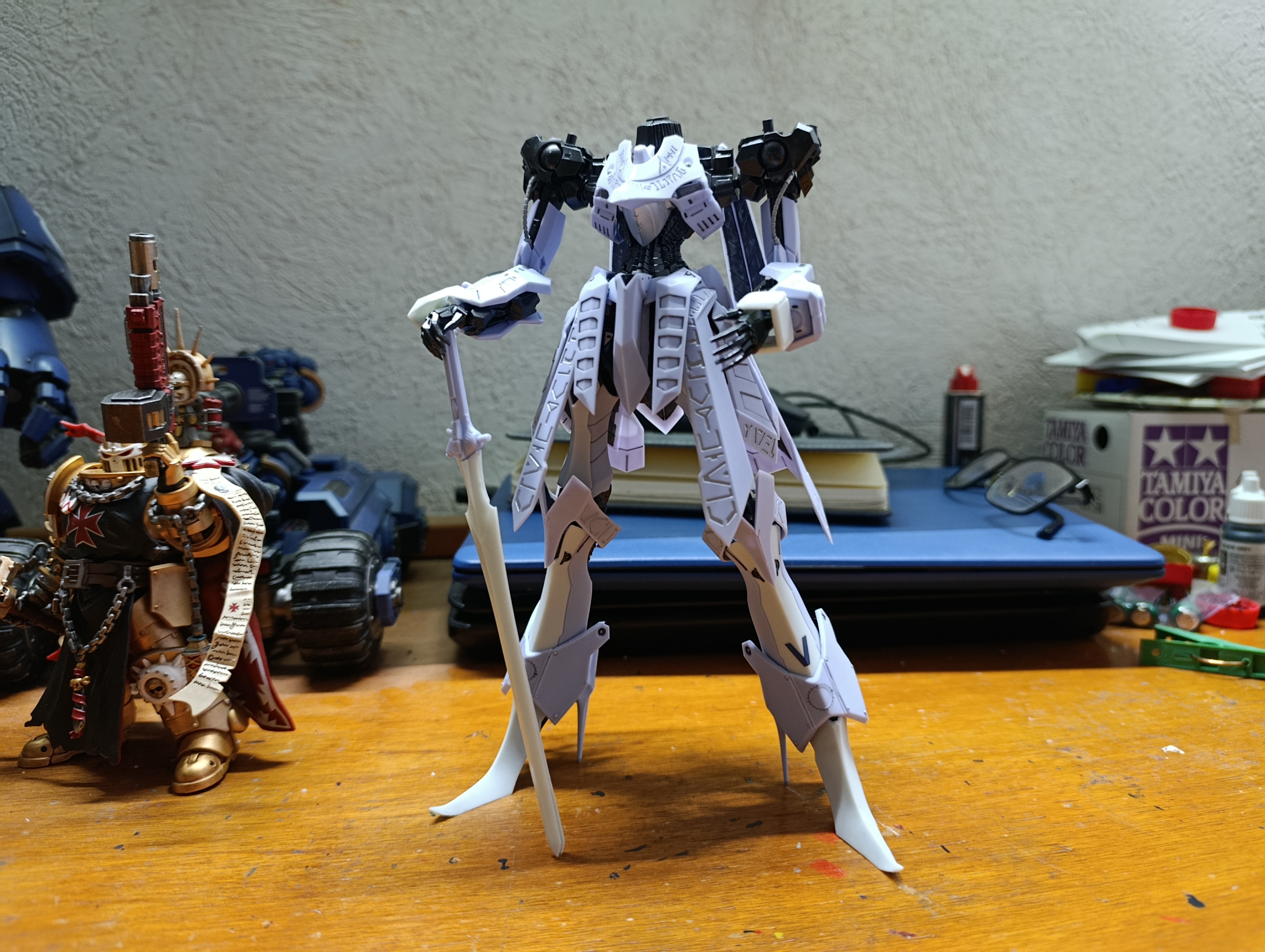 >>11612913Its the 1/100 Bangdoll of the IMS line by Volks.It is a infamous kit due to being the first, let's say, affordable plamo of the Five Star Stories mechas, which were exclusively resin kits by that point. It is like 15 years old since its release I think?Being a plastic model it was easier to purchase and build than a resin one at the time, but it also suffers from being the first release and its bad fame is associated to plenty of issues related to things than range from flash remnants in the parts, fitting issues, large seamlines and overall fragility, especially during the assembly process, for which yes, glue/cement is a must, no other way around it.As I have been building it I can attest to those issues. I'm basically doing a straight out of the box build, just using metallic black for the inner frame parts and flat topcoat for the light blue ones, but holy shit dude, the closer I get to completing it, the more fragile it feels.The joints of the shoulders and arms connectors are really bad compared to shit like Bandai's or Koto's, in the sense in which they favored aesthetics first over practicality. The moment I manipulate them the parts are prone to fall off.I'm still not sure I want to also use cement there because the problem is that they are composed by a series of parts that fit into each other like a tetris game and out of that mess comes the one with the polycap that houses the should balljoint, so even gluing them might end up making the whole thing brittle and prone to breaking.Despite all those faults and issues, it remains a relatively popular kit because the design of this particular mecha is something else, even among the more modern Volks releases