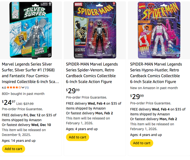 >>11618527Oh please, I saw the Lilandra 2 pack and Dr. Strange 2 pack for like $26 like a month or two ago. They hit discount, you just have to be patient. Also, those price trackers aren't that accurate from my experience. I almost picked up the LIlandra pack at that price, but the price tracker doesn't ever show it going that cheap.