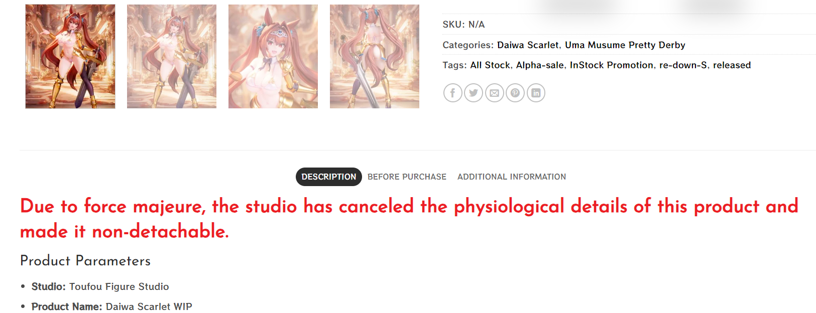 >>11633689orzGK is full of them now. Lot of figs now have notice like this or similar. Either lewd versions are scrapped or parts that were supposed to be detachable aren't detachable anymore.I tried to look it up and see what happened and it seems it's some sort of annual ritual in China to find some scapegoats and show results to the party officials, so around new year they are tightening the screws and actually enforce obscure laws no one gives a shit about throughout the year. For example couple years back Genshin had to censor their characters because of similar action, but like 2 months later everything died down and they continued like before.What's funny is that bunch of those figs were already released so I doubt they are cutting nipples off. I think they either just put notice as excuse, or just glue detachable parts. If it's the latter then I wonder if they use some glue that can be easily melted with hair dryer so you could get fig like it was intended, with easily detachable parts for lewd and non-lewd configuration.It's really shitty timing because I have ordered lewd 2B figure and this shit started to pop up while it was in "processing" phase, meaning it's already released, order confirmed, all paid, waiting to be shipped out. I hope it will come as intended, not glued together.Kind of sucks because I like horsegirls, knights and lewds so this would be high priority fig for me. Now if it won't be lewd then it drops on my priority list.