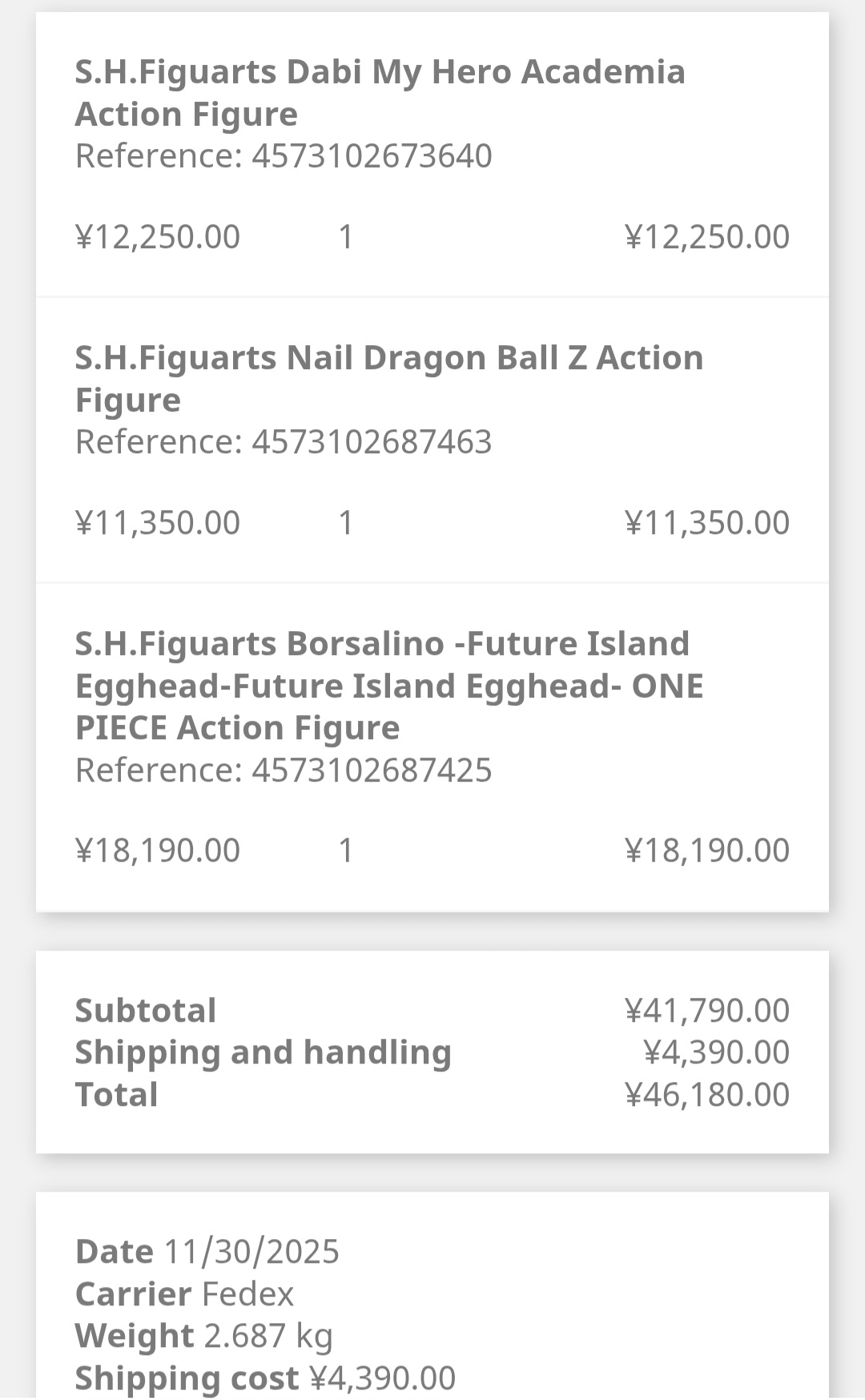 So Amiami finally shipped my SHF Ben Kenobi classic version. However the ECMS tracking stopped updating after it processed through LAX. Last update is "shipment is being tendered to 3rd party for final delivery". Am I just not going to get any more tracking updates? I don't know who the third party vendor is.